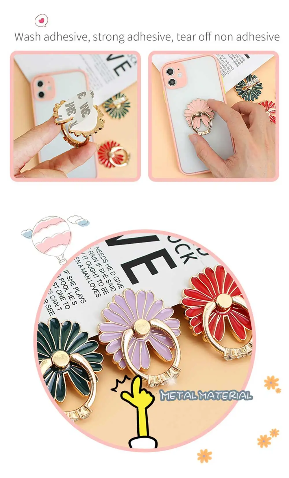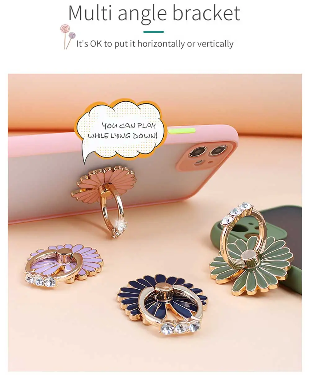 360 градусов металлическое кольцо на палец для смартфона с цветочно...