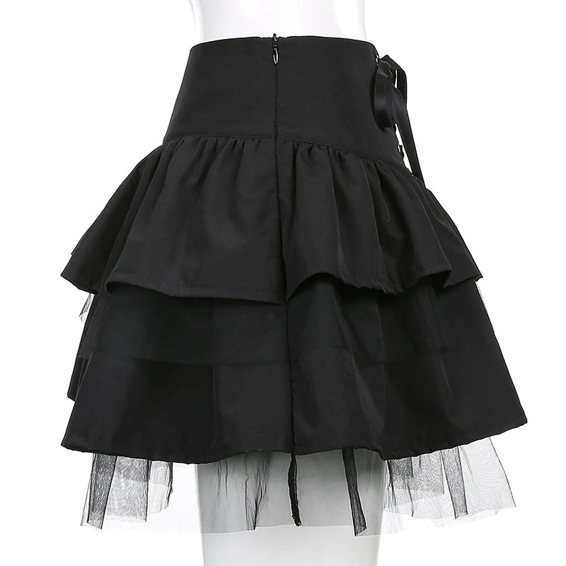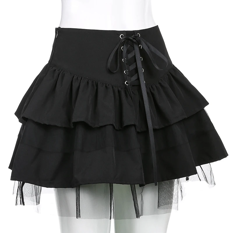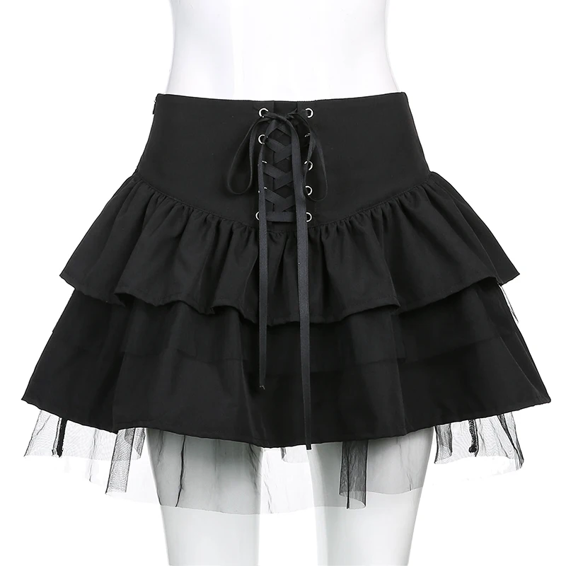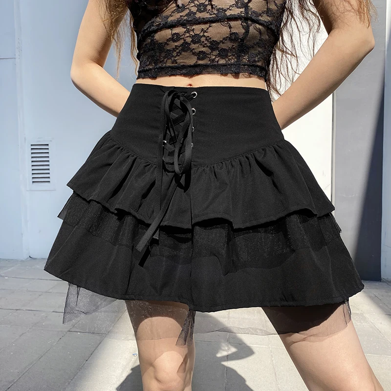 Женская плиссированная юбка-пачка HEYounGIRL в стиле Харадзюку, черная сетчатая юбка с высокой талией, женская летняя уличная одежда с завязками и оборками