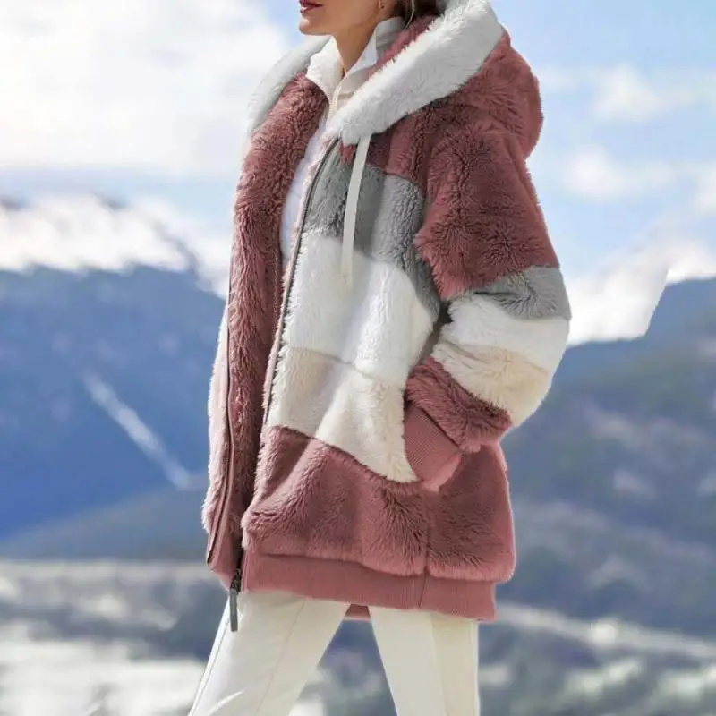 Контрастное пальто с подкладкой из овечьей шерсти женская зимняя модная повседневная теплая куртка на молнии шерстяные и смешанные пальто и куртки теплое пальто из кашемира