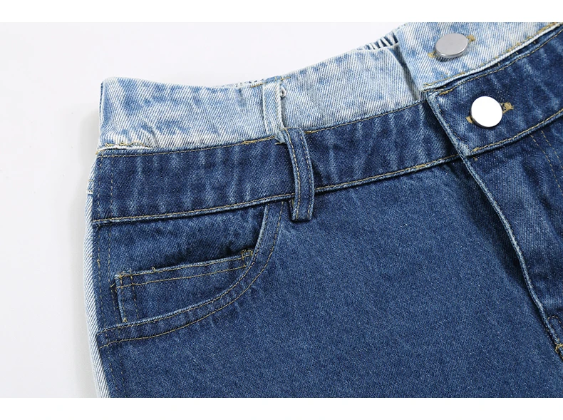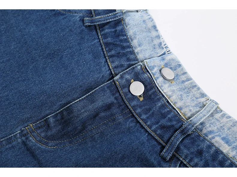 Женская джинсовая юбка составного кроя, Повседневная синяя трапецие...