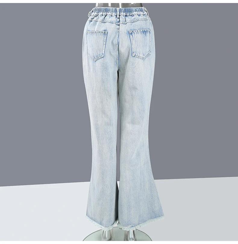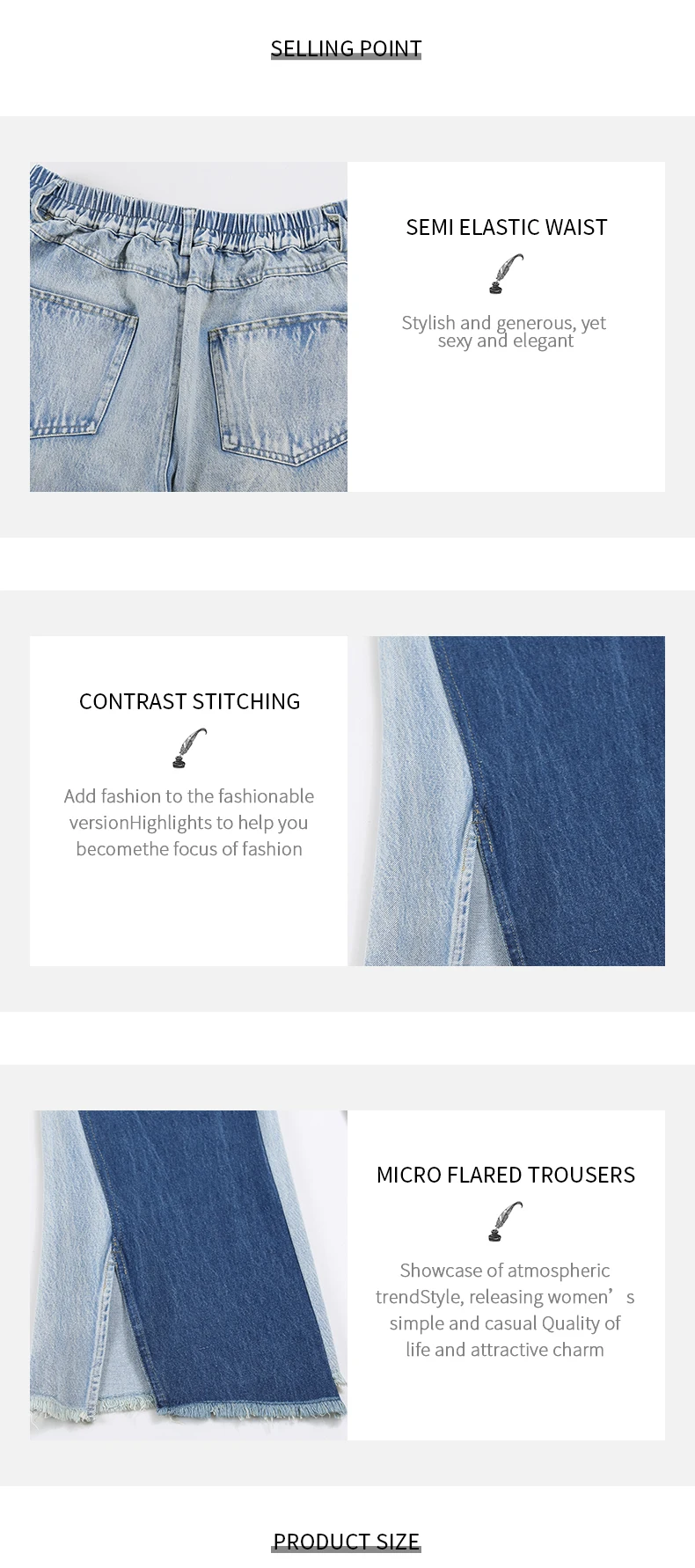 Хит, цвет 2021, лоскутные женские весенние винтажные длинные расклешенные джинсовые брюки с высокой талией, эластичные женские джинсы, брюки, стиль 8000