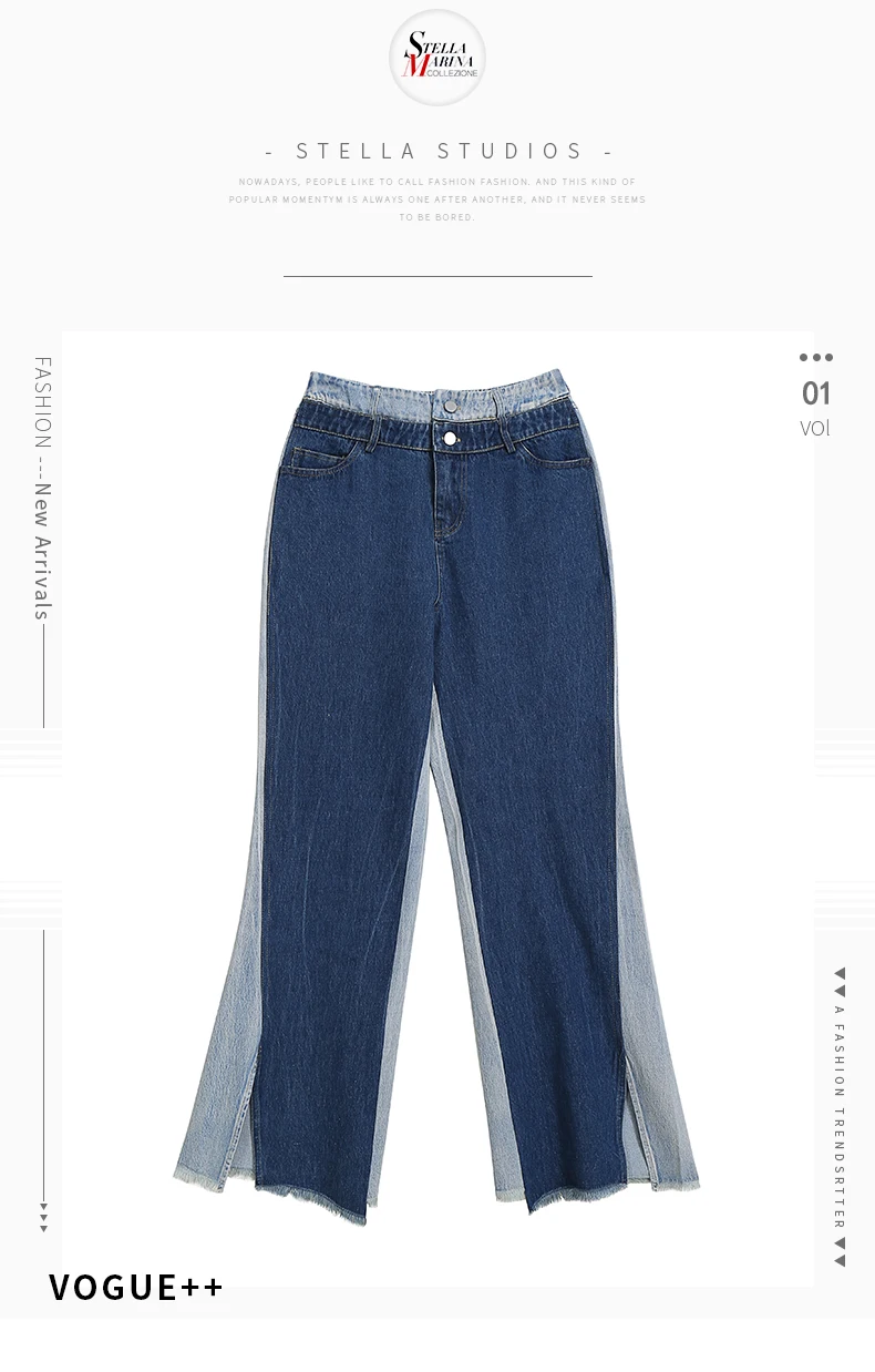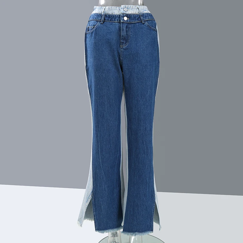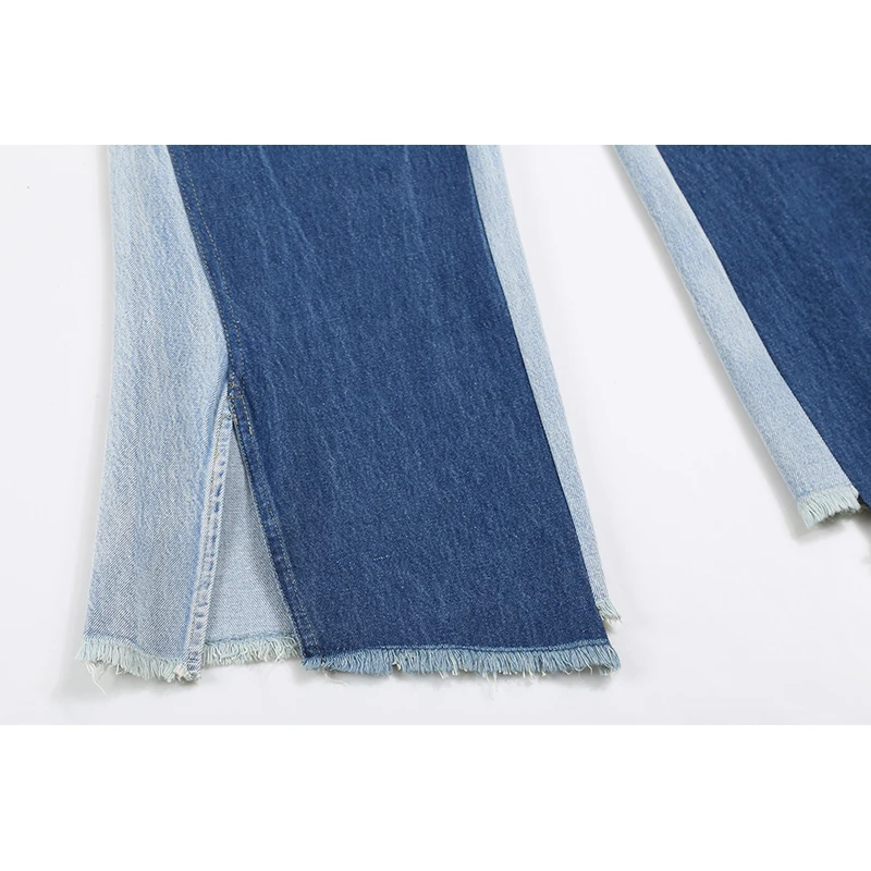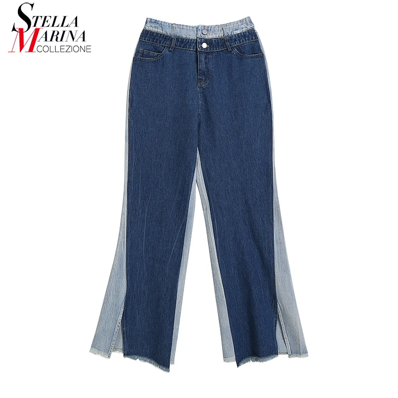 Хит 2021, цветные женские весенние Лоскутные винтажные длинные расклешенные джинсовые штаны с высокой талией, эластичные женские джинсовые штаны, стильные брюки 8000