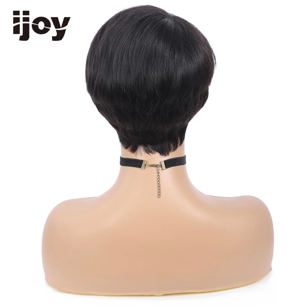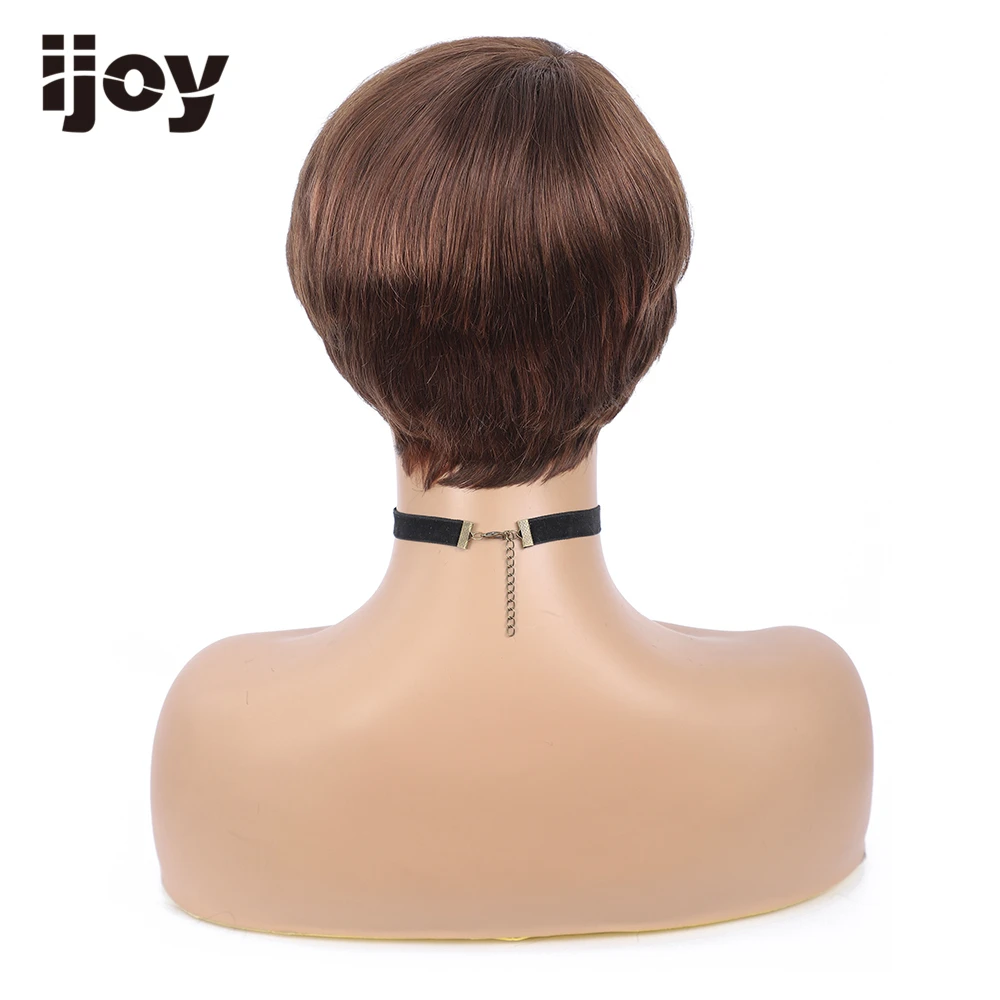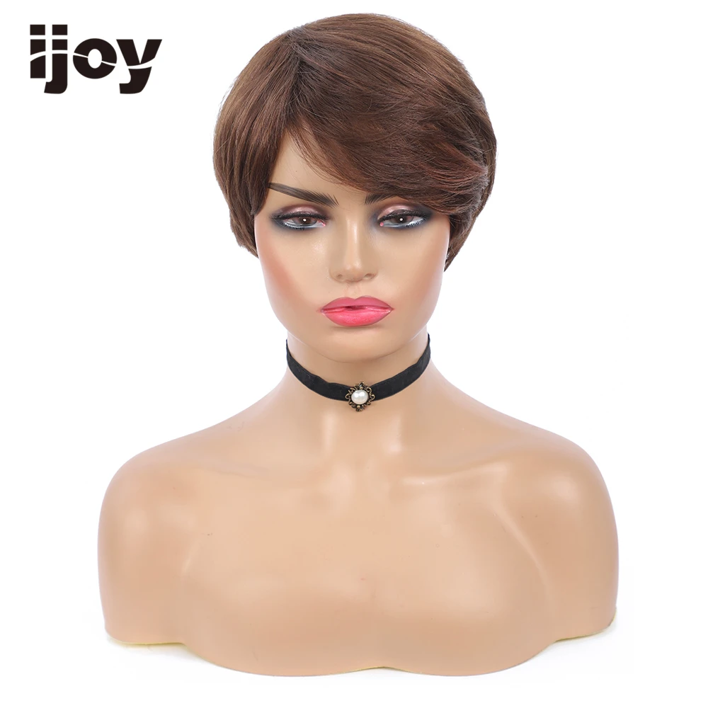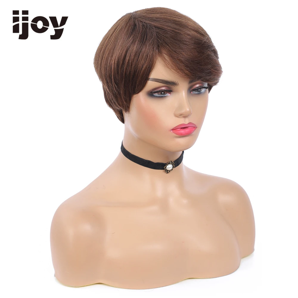 Парик из человеческих волос с челкой, короткий прямой парик, цветные 4 темно-коричневые бразильские волосы, полноразмерные парики для черных женщин, не Реми IJOY