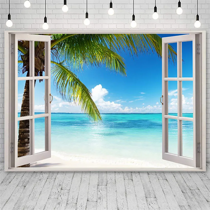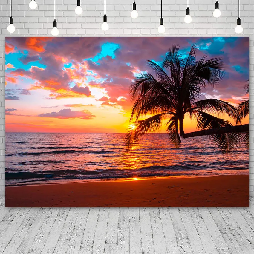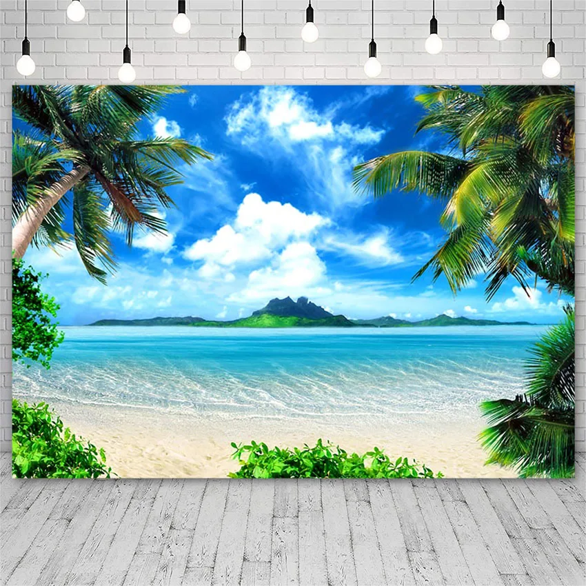Фон для фотосъемки с изображением тропического моря пляжа пальм дерева Авроры летнего отдыха Природный сценический фон фотосессия Фотостудия