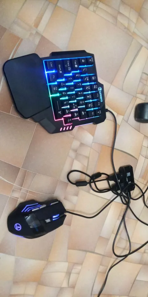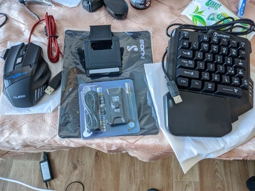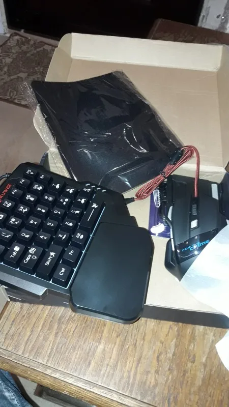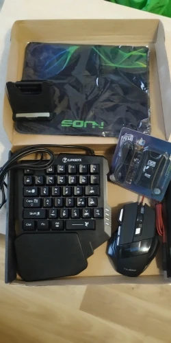 Заказ пришел за 2 недели,упакован во много слоев пупырки,ничего не помялось\потрескалось. Код на приложение сработал,скачал,установил,сразу обновились установленные профили. Продавец положил коврик в подарок,мелочь а приятно. Клавиатура хорошая,клавиши нажимаются четко. Разочаровала только мышь,болтается колесо прокрутки и все дополнительные кнопки,но игре это особо не мешает. Ещё переодически в режиме курсора мышь срывает но не критично,остальная работа достаточно плавная. Настройки простые и тем кто имел хоть раз опыт настроек эмуляторов андроида на компе трудности не составит абсолютно настроить под себя все управление. Вообще покупкой доволен,продавца советую.