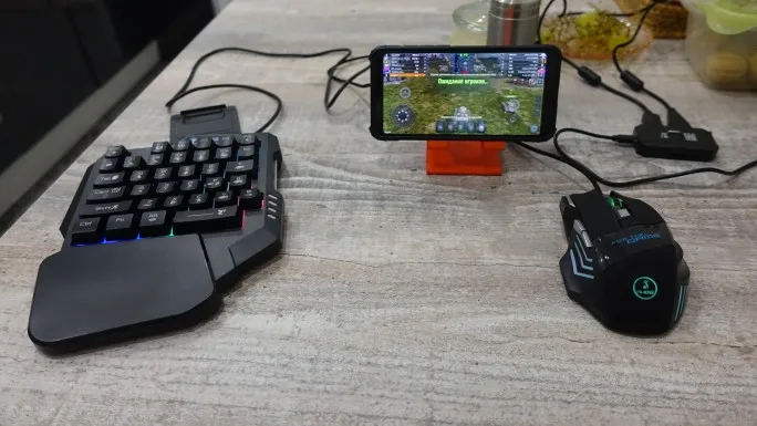 Заказывал на хонор 9х всё работает подцветка крутая, ну с настройками нужно повозиться, в комплекте конвертер, клавиатура, мышь,коврик, и подставка под телефон, фототь не буду и так хвотает.