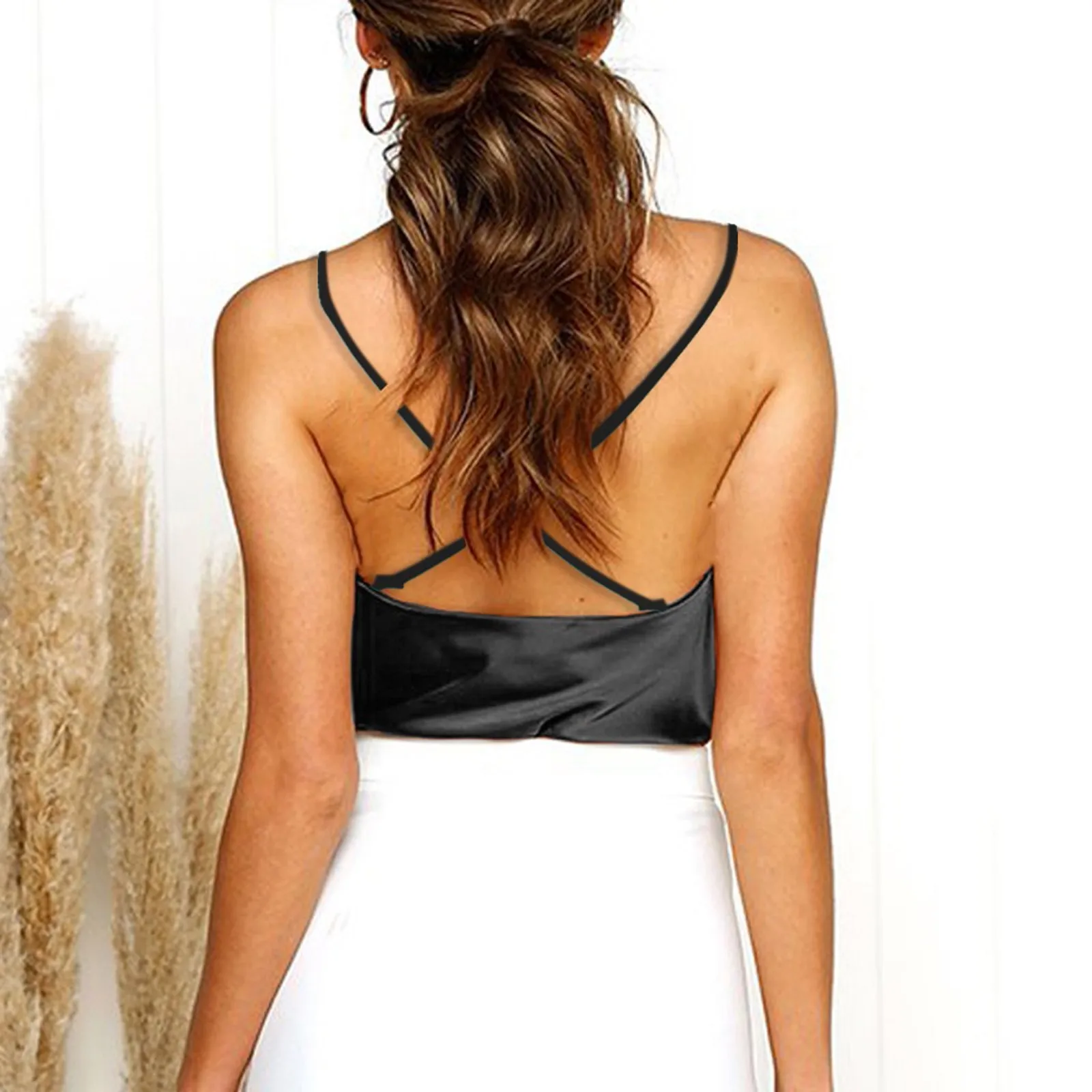 Майка женская атласная однотонная с регулируемыми бретелями, пикантный Повседневный свободный кроп-топ без рукавов, лето 2021