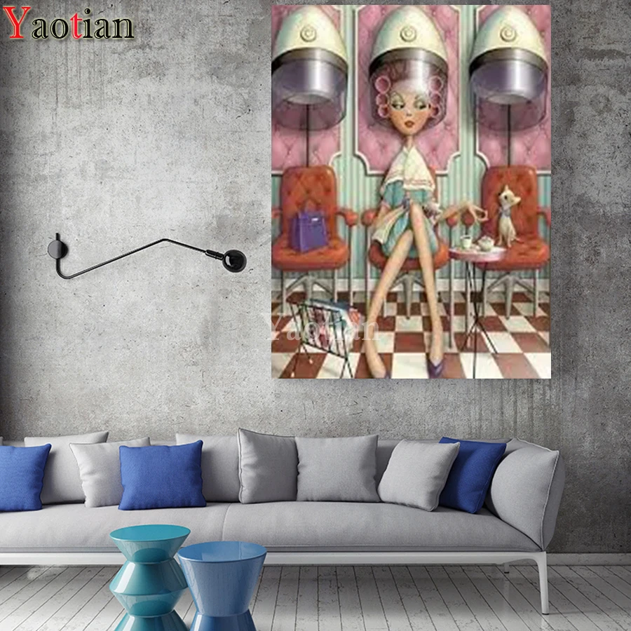 Новинка 2021, рукоделие, мультфильм, девочка, Парикмахерская, сделай сам, алмазная живопись, 3D Ручная работа, декоративная живопись, вышивка крестиком, mosiac