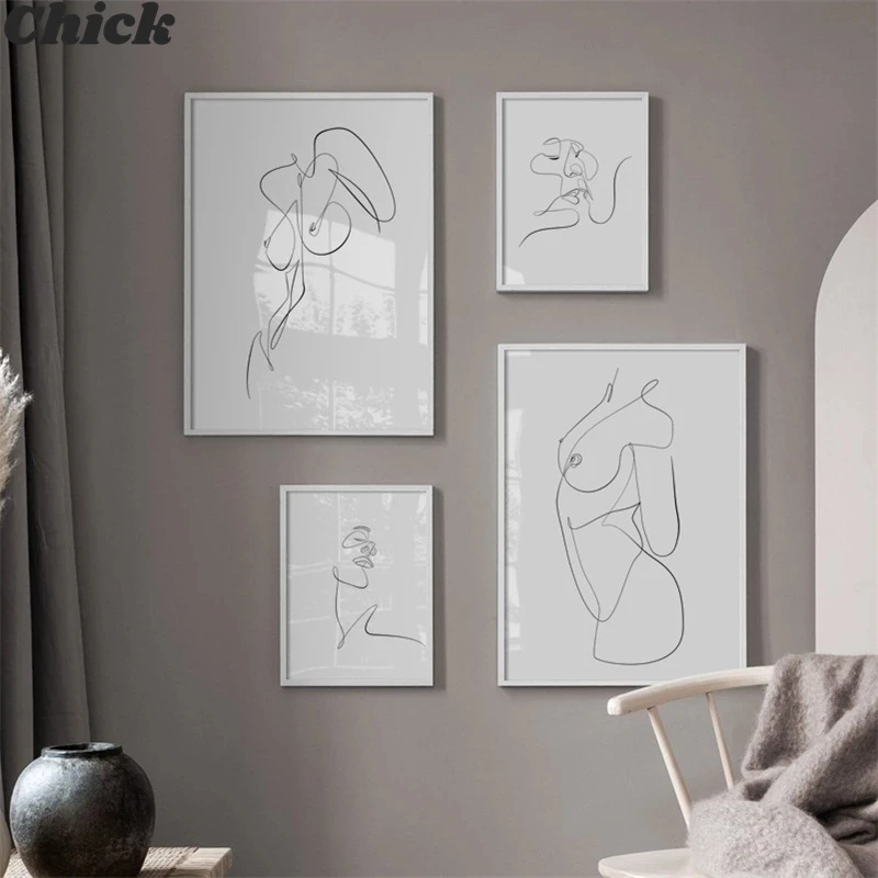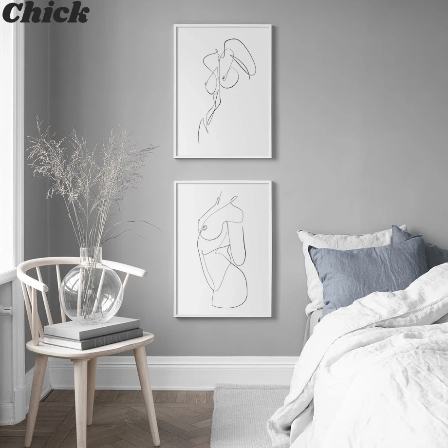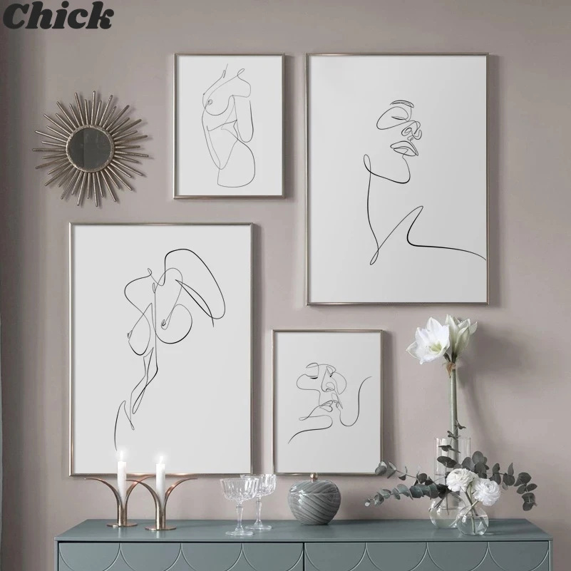 Абстрактная Обнаженная поцелующая линия боди-арт принты скандинавские плакаты и принты настенная живопись на холсте настенные картины для декора гостиной