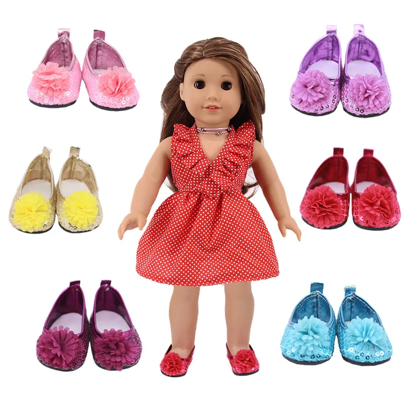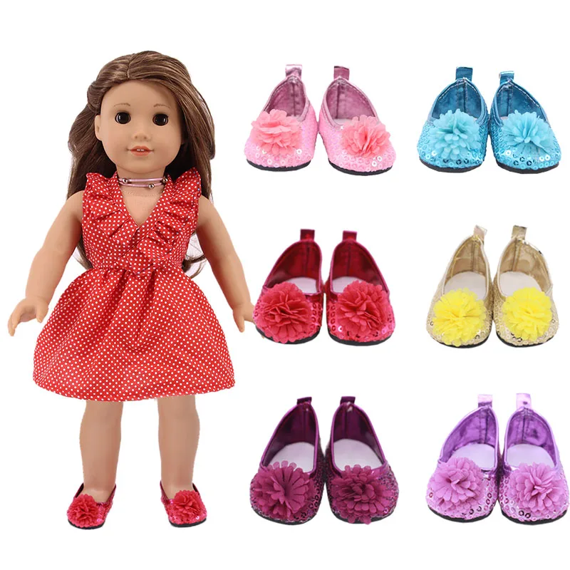 Кукла Детская обувь на каблуке 7 см с блестками Милая для женщин; Балетки с мягкой подошвой для 18 дюймов с капюшонами в американском и 43 см для ухода за ребенком для мам Одежда для новорожденных, аксессуары для куклы девушки игрушка 13 кукла DIY