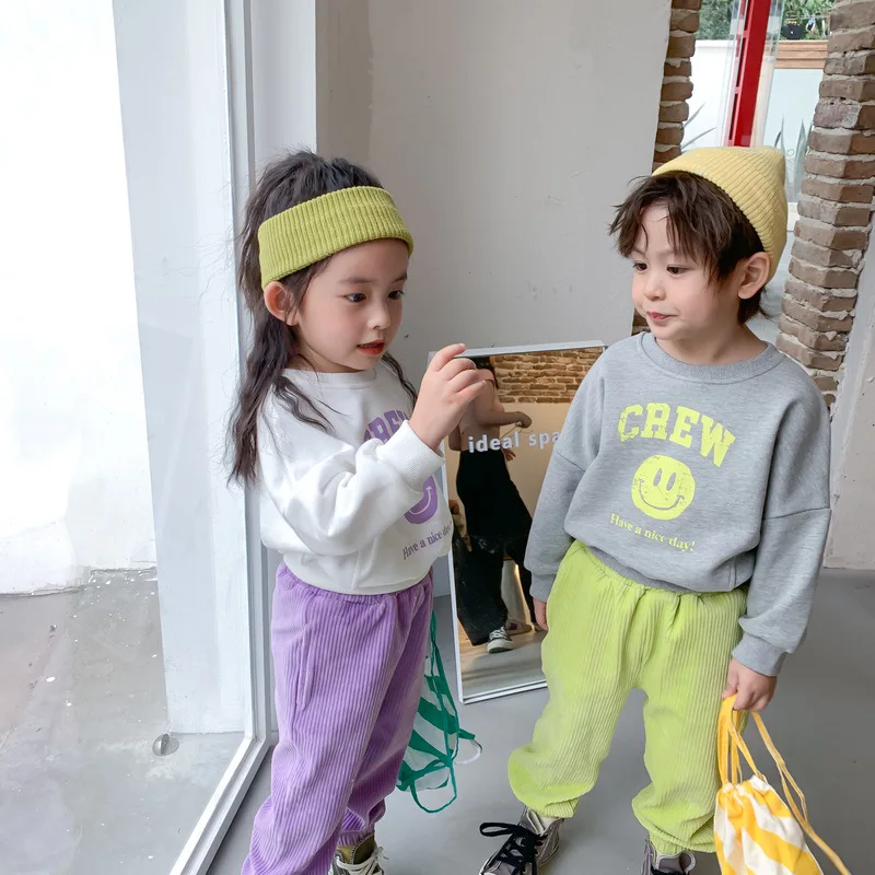 MILANCELНовинка 2021 года; Весенний комплект детской одежды; Свитер с надписью для мальчиков и девочек; Вельветовые брюки с морковкой; 2 предмета