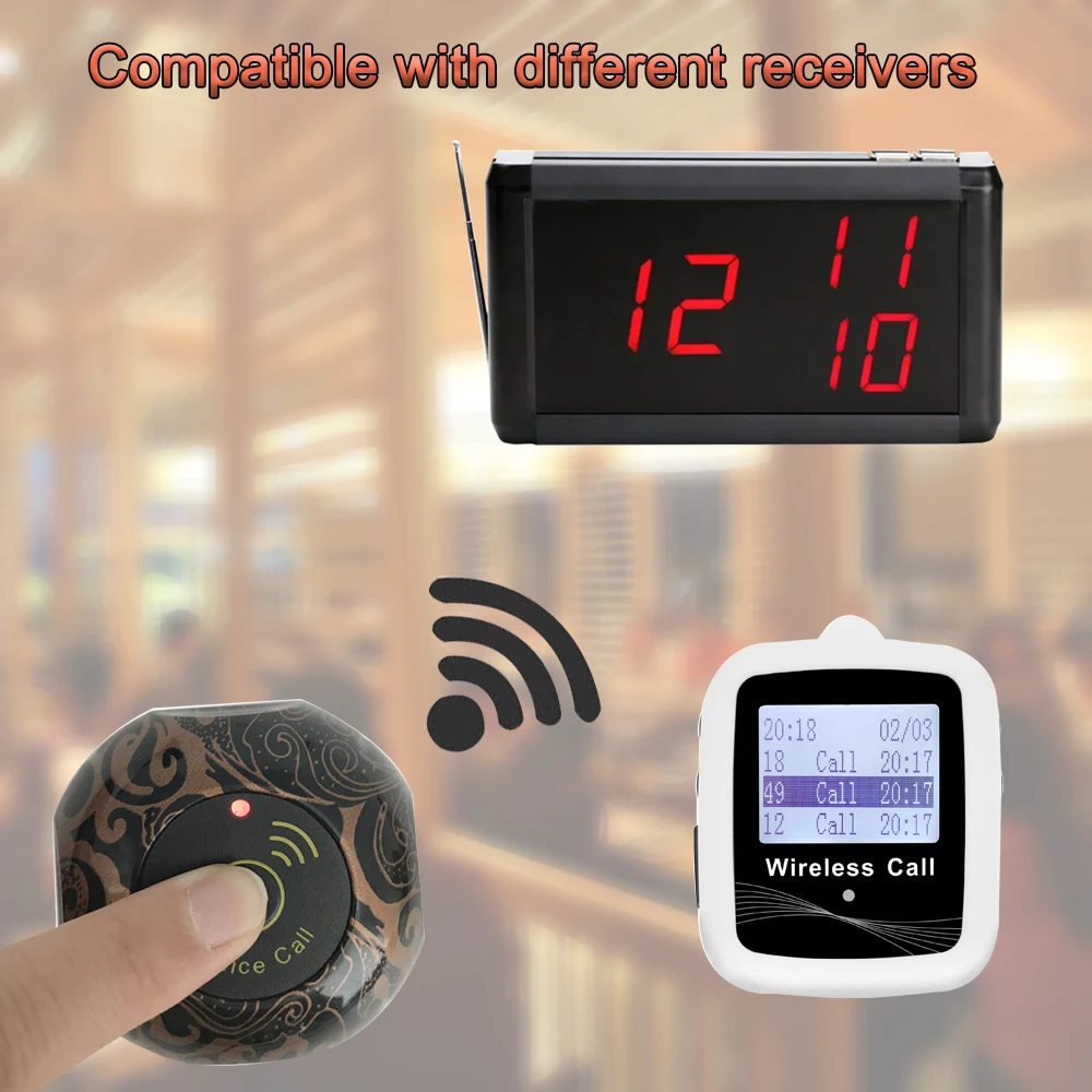 Передатчик дальнего действия беспроводной пейджер 1 кнопка вызова коричневая частота 433 МГц для ресторана кафе офиса церкви