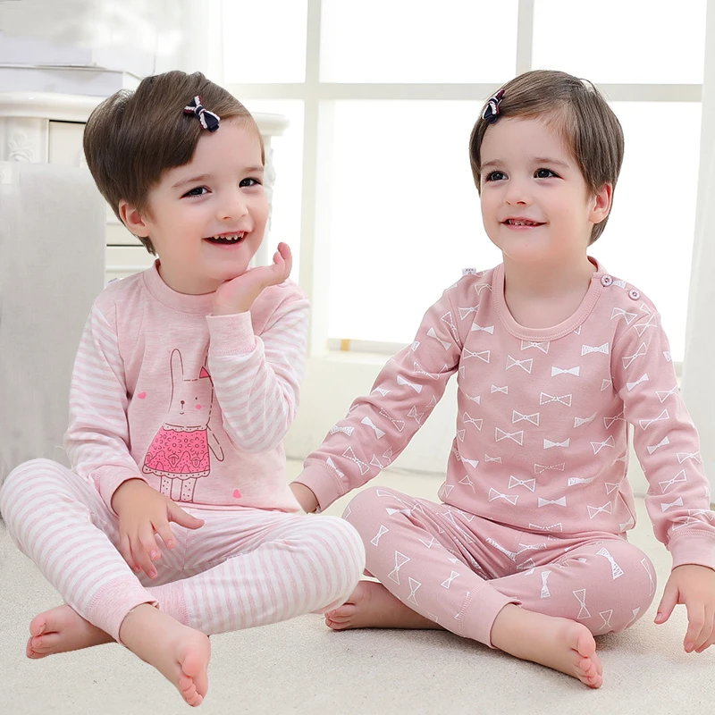 Хлопковая детская пижама, 2 шт., мультяшная детская одежда для сна,...