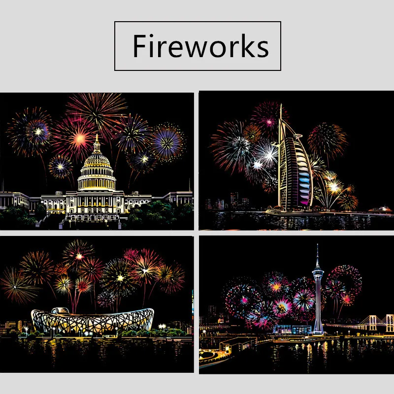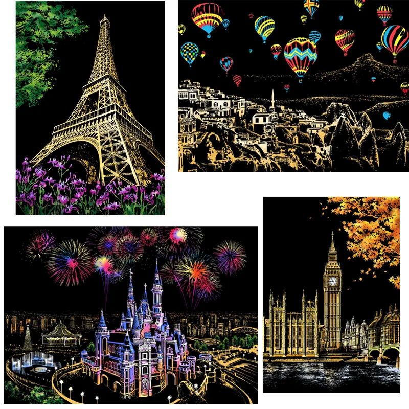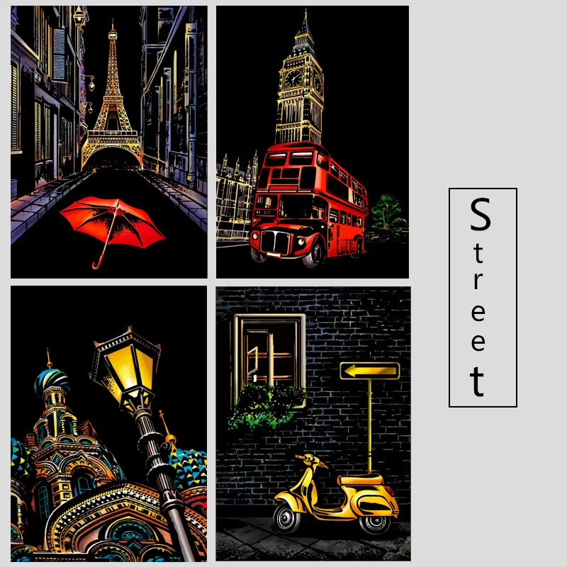 TrumpetNight scene scratch painting city landscape architecture scratch paint