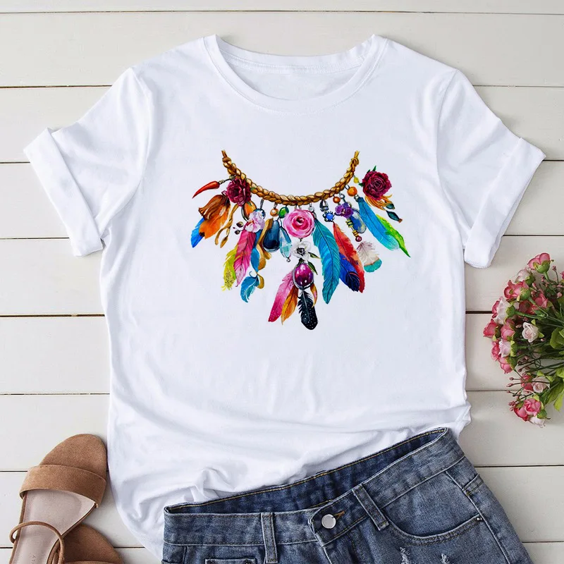Футболка женская с принтом Красивых Перьев, топ с коротким рукавом для молодых девушек, одежда в стиле Харадзюку