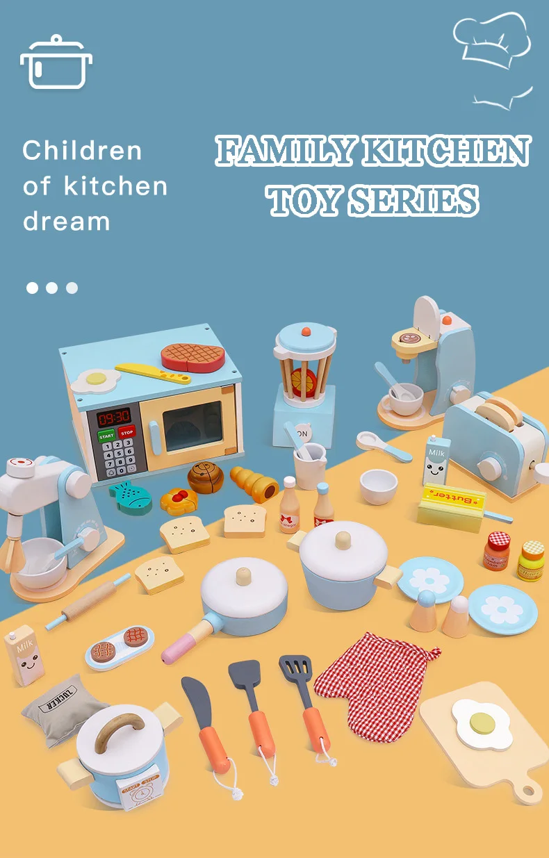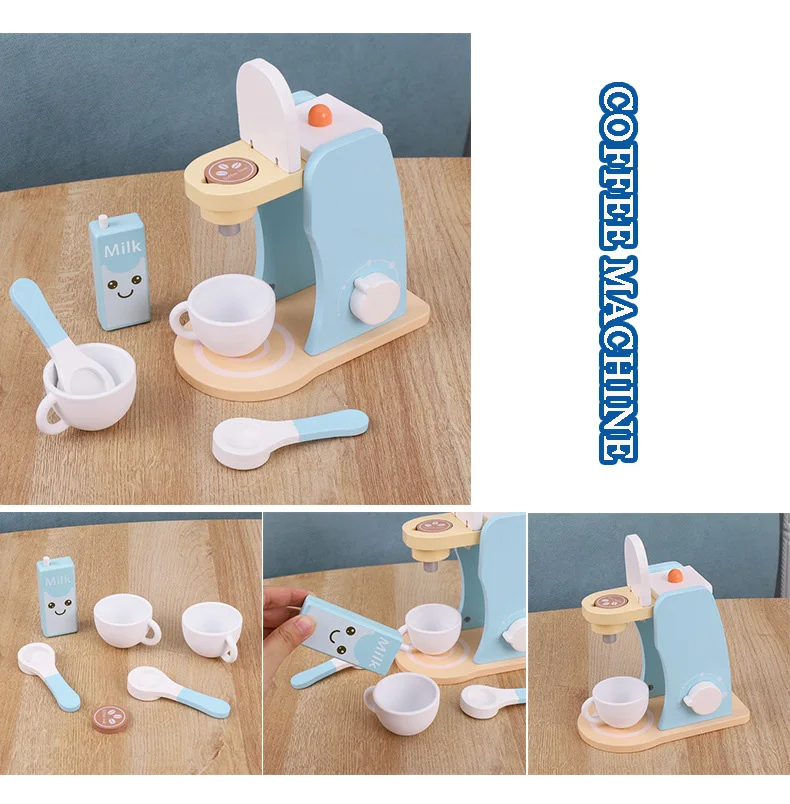 Детская Имитация деревянной хлебопечки, Кофеварка, устройство для приготовления блинов, миксер, комбинированная кухня, для девочек, игровой домик, обучающие игрушки