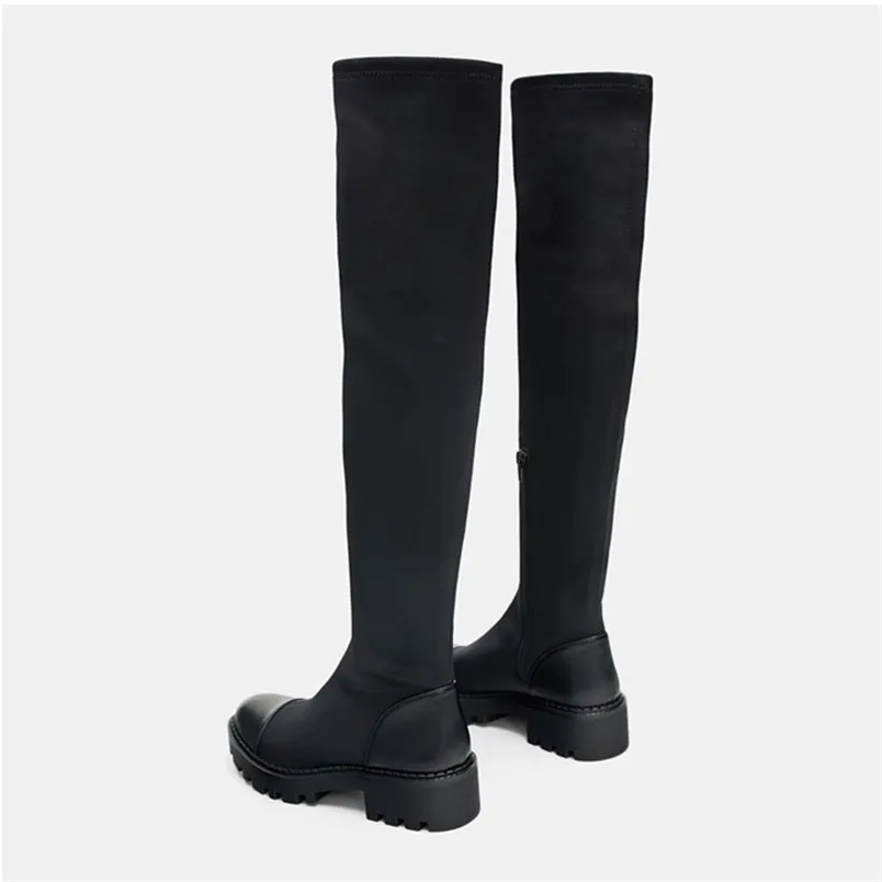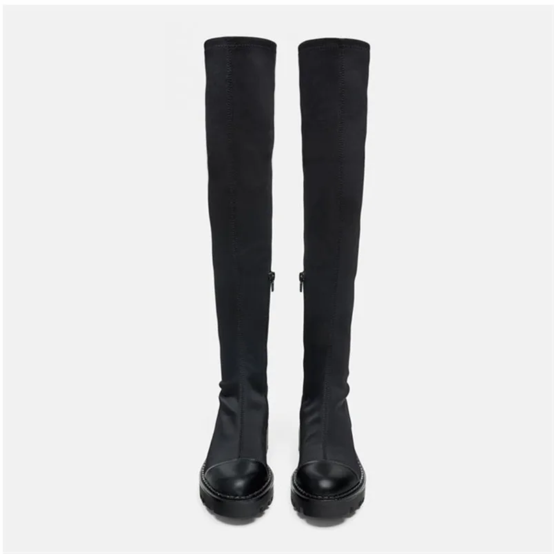 Женские сапоги до колена; 2020 г.; Сапоги выше колена; Зимние пикантные женские сапоги черного цвета из эластичной ткани на платформе; Женская обувь