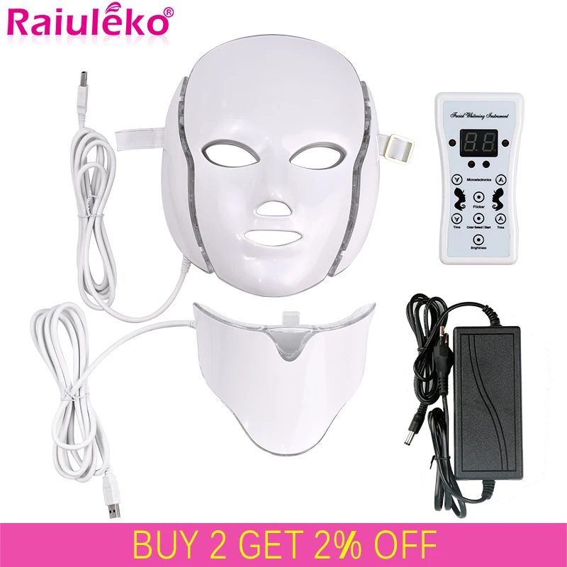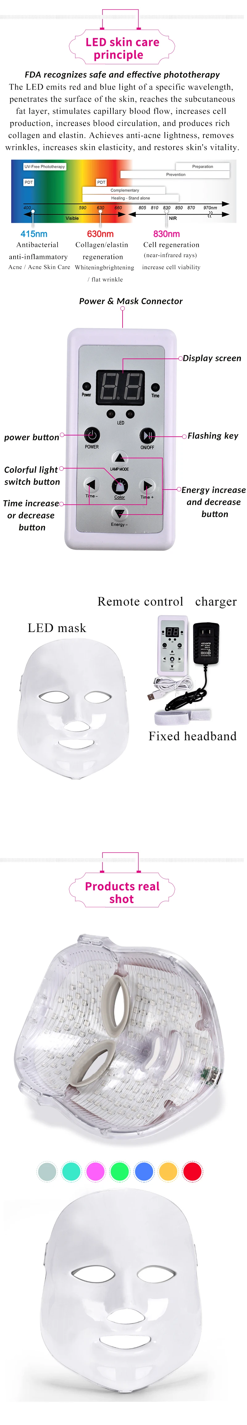 7 цветов, светильник, светодиодная маска для лица, светодиодная фотонная терапия, маска для лица, машина, терапия, уход за кожей, маска для удаления акне, косметическая светодиодная маска для шеи