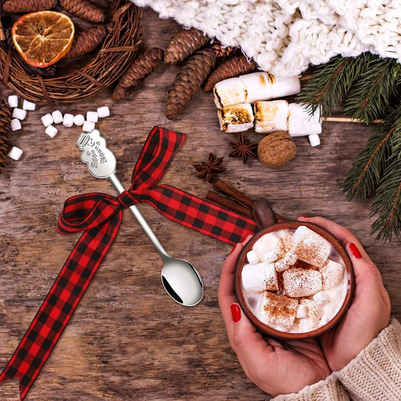 Рождественские украшения для дома, милые кофейные ложки из нержавею...