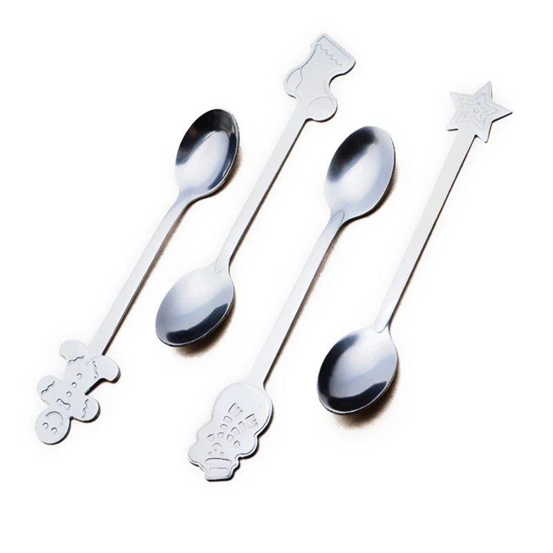 4 шт.компл. рождественские кофейные ложки из нержавеющей стали, дес...