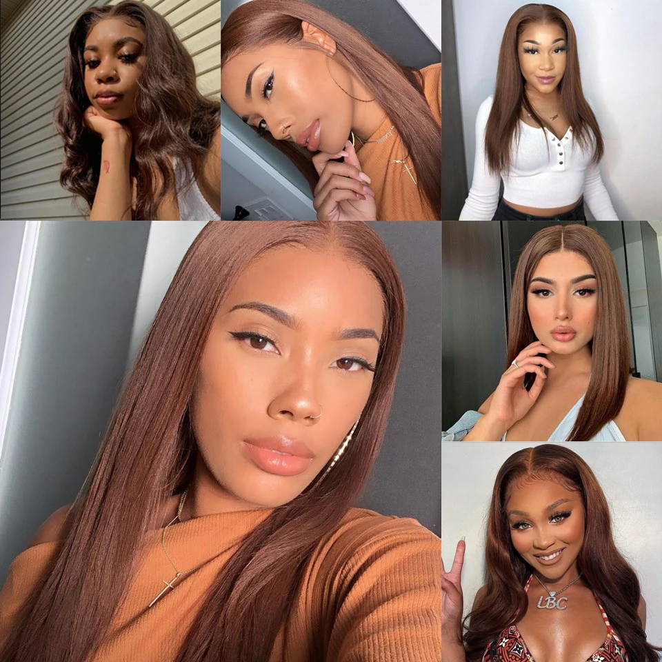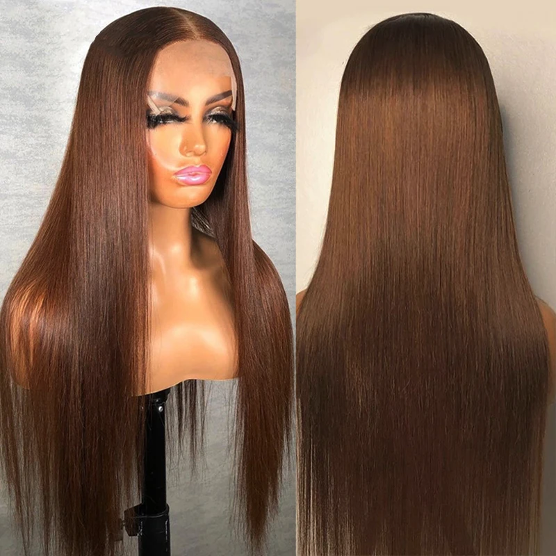 Прямые парики из человеческих волос на фронте шнурка 180% Плотность коричневые парики шнурка