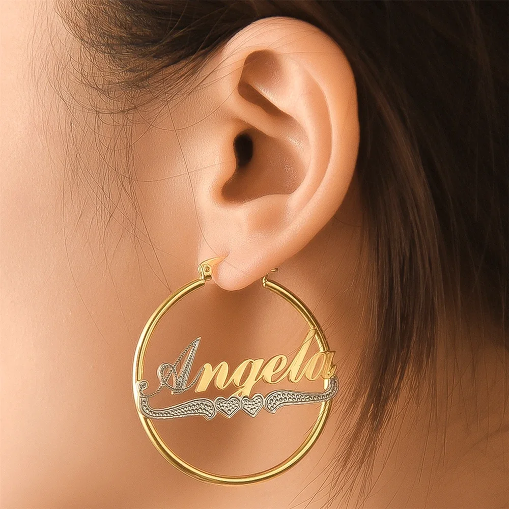 Серьги-кольца женские из нержавеющей стали, с именем на заказ, с буквами и сердцем, золотые, 2020