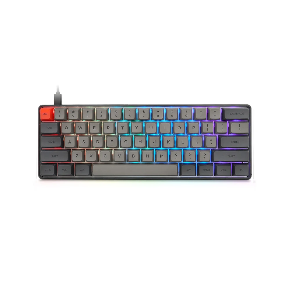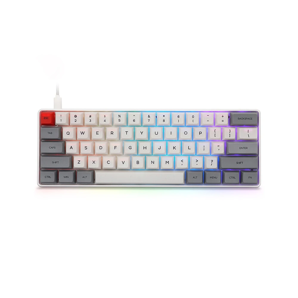 6,SK61-это стандартная клавиатура 60% с RGB подсветкой, USB-C проводным подключением и оптическими переключателями. Кабель USB-C отстегивается для удобства переноски.