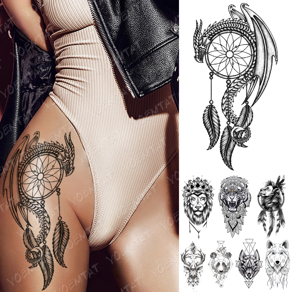 тату наклейки тату временные женские стикеры татуировки переводные Водостойкая Временная тату-наклейка, дракон, Лев, тигр, Ловец снов, тату, панда, волк, боди-арт, тату на руку, имитация рукава, для женщин и мужчин