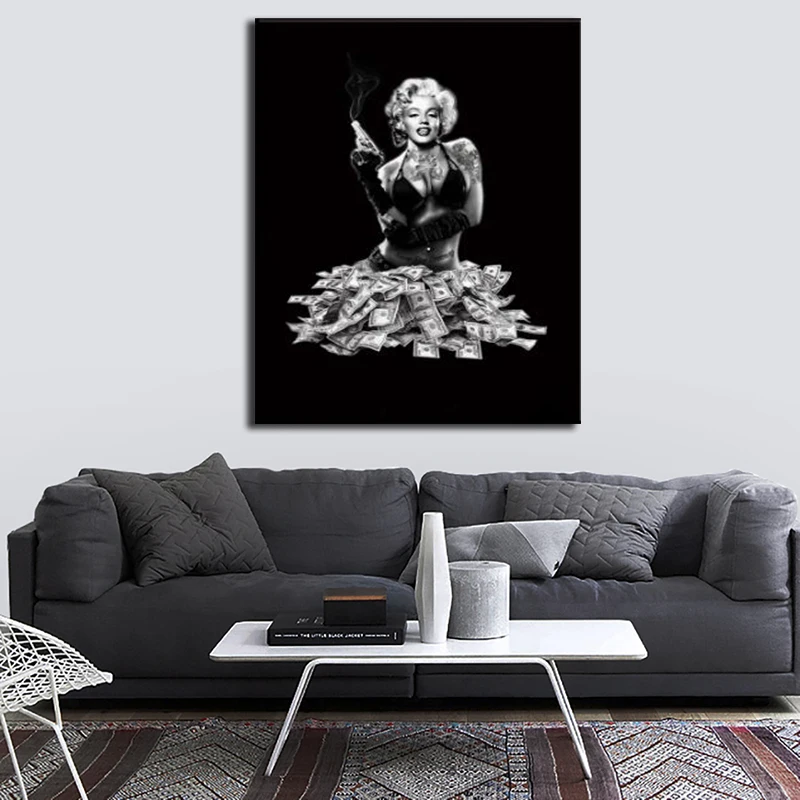 Черно-белая привлекательная большая картина плакаты и принты звезд Мэрилин Монро большая Классическая картина для гостиной домашний декор