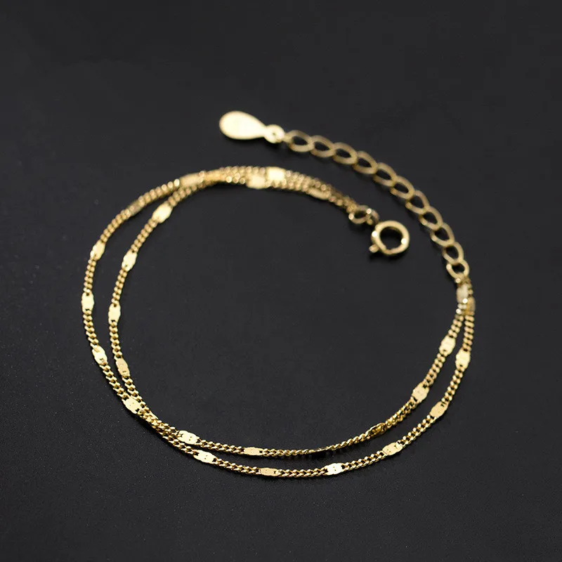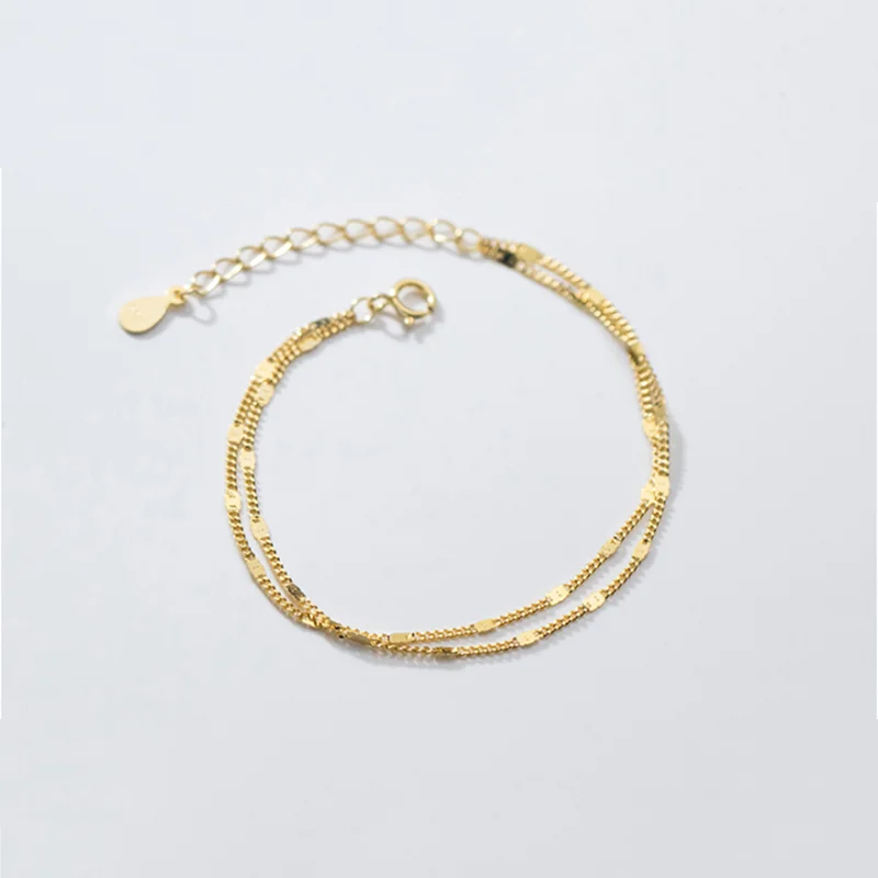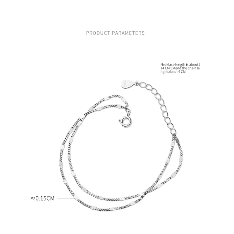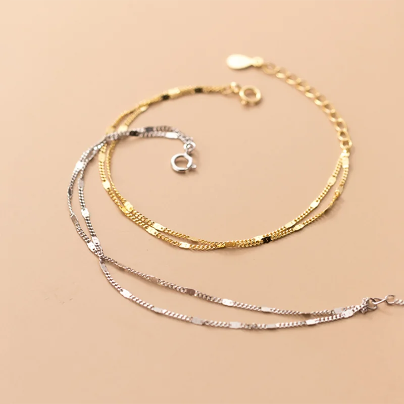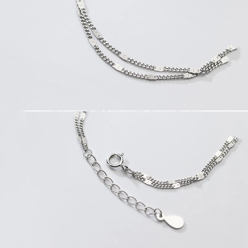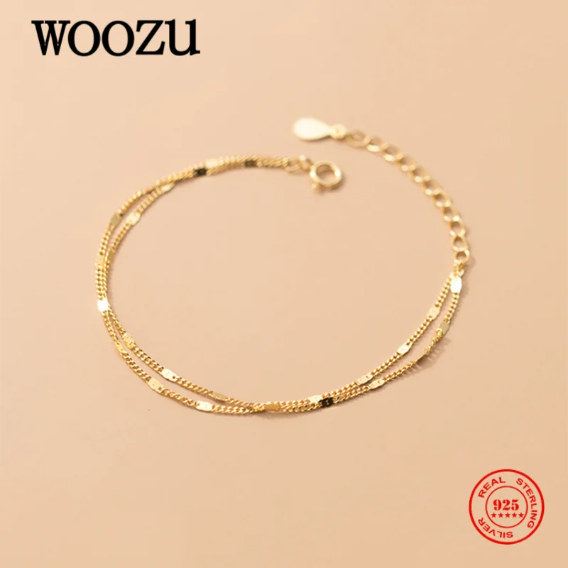 WOOZU натуральная 925 стерлингового серебра простой изящный двойная цепь Слои, браслеты с брелоками для женщин модные женские туфли вечерние в стиле панк, ювелирное изделие, подарок