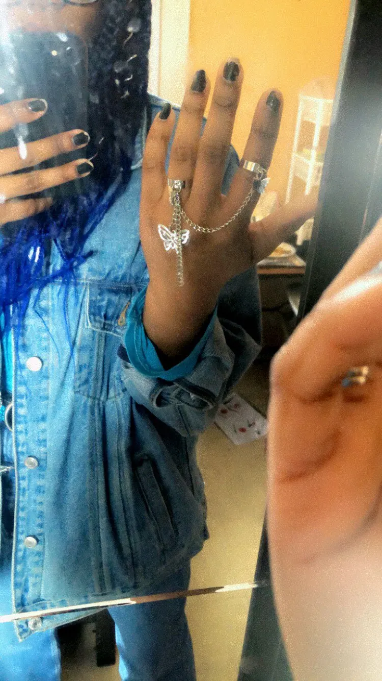 Кольцо унисекс с серебряным покрытием, в стиле ретро, панк, хип-хоп, с бабочкой, регулируемое, цепочка на палец