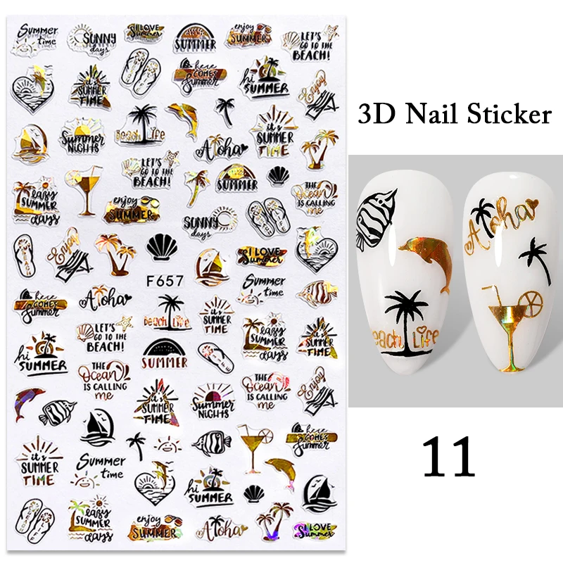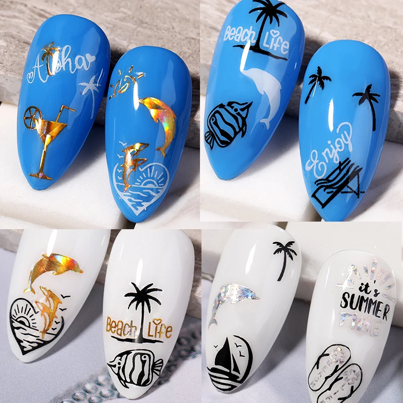 Летние тропические пляжные шлепанцы с кокосовой пальмой, 3D наклейки для ногтей, листья, ракушка, переводные наклейки, слайдер, украшения для маникюра