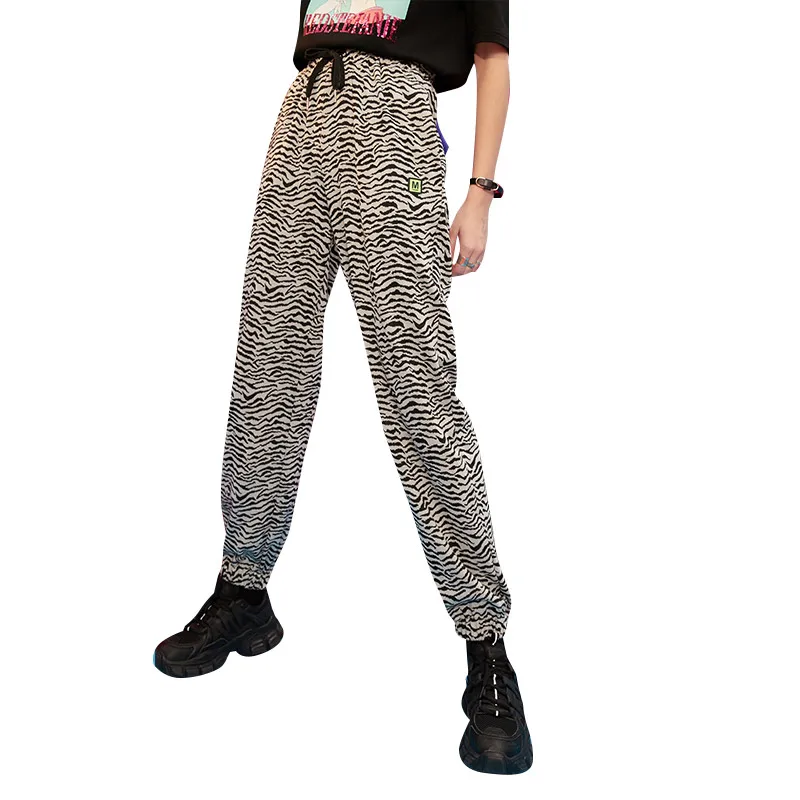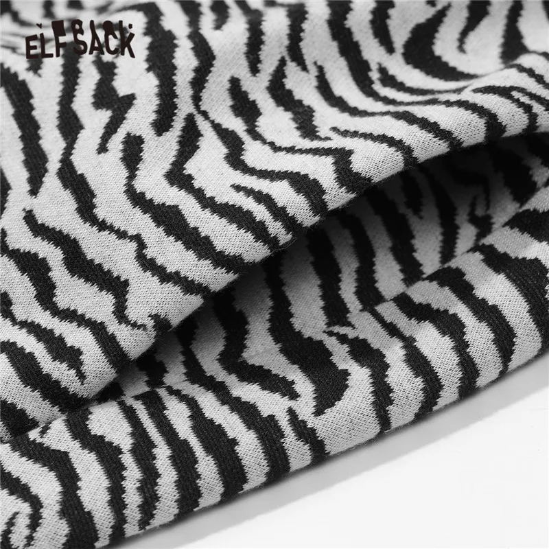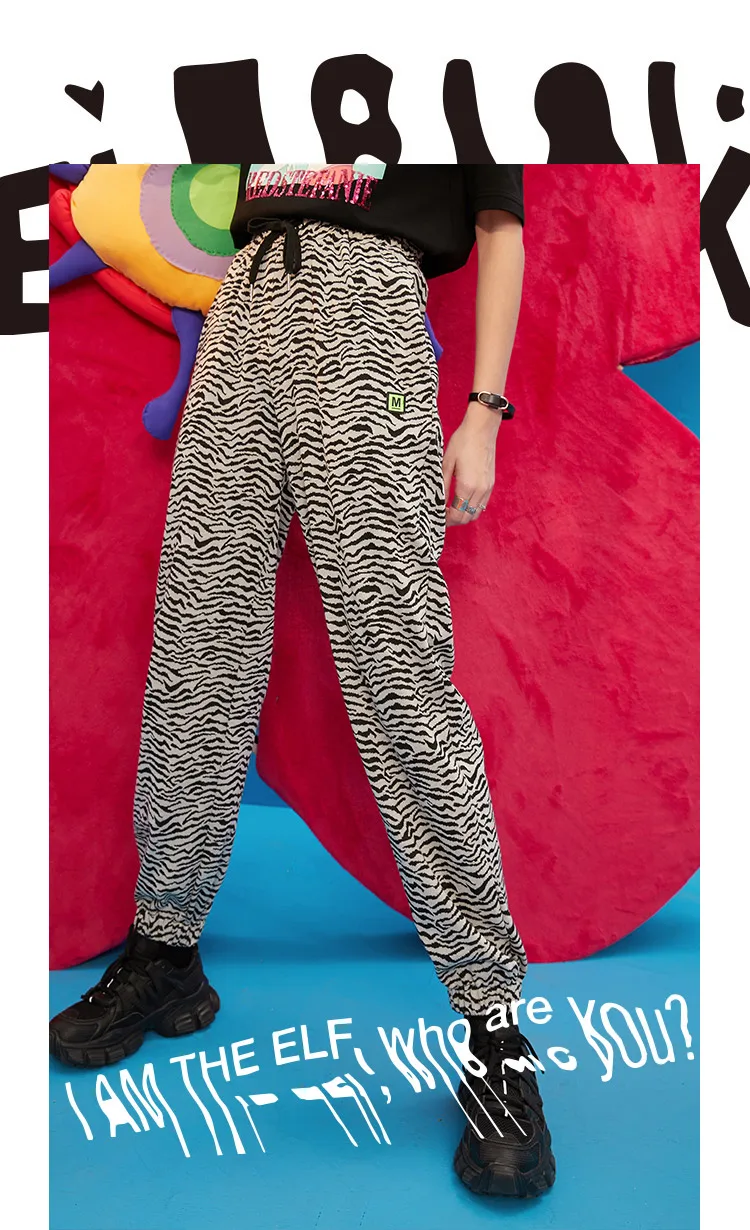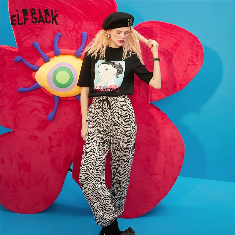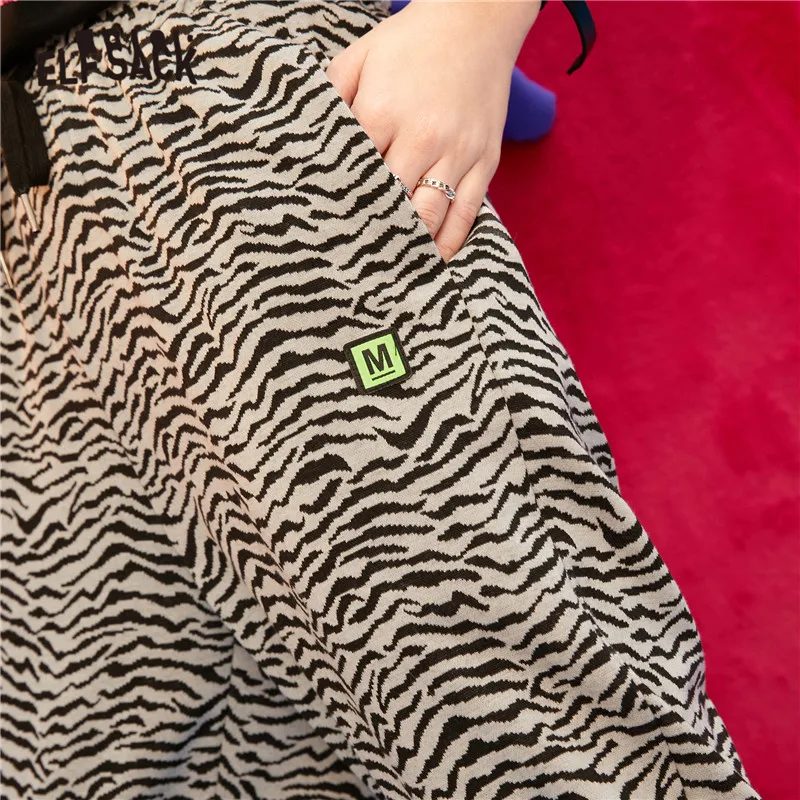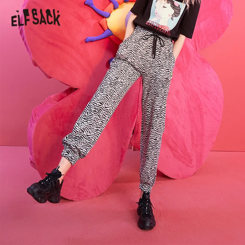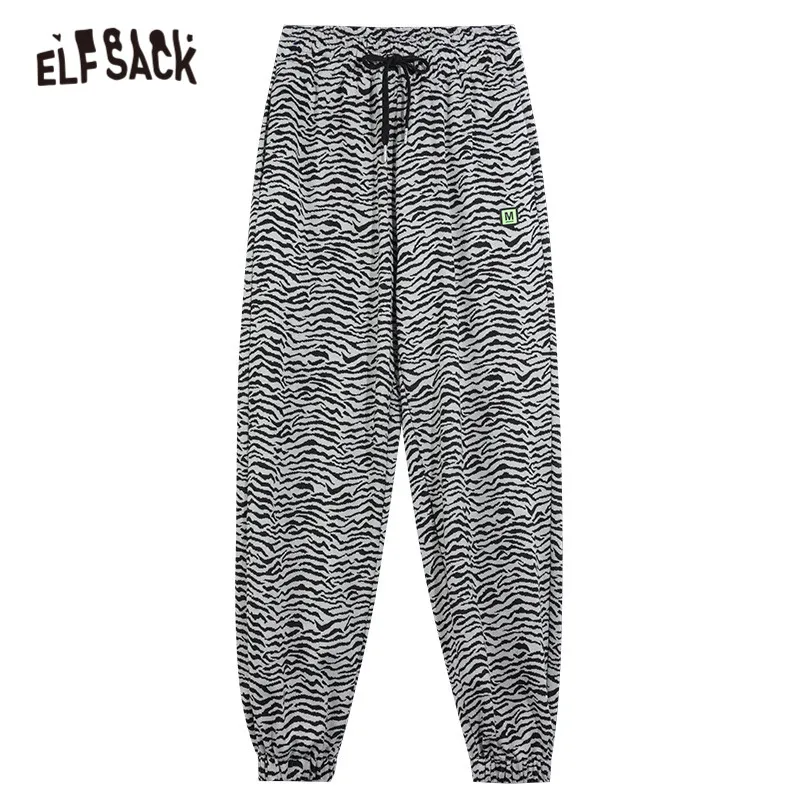 ELFSACKПолосатые повседневные женские шаровары с высокой талией в полоску с принтом зебры; Коллекция 2021 года; Сезон Зима; Винтажная Женская Базовая повседневная обувь на завязках в Корейском стиле