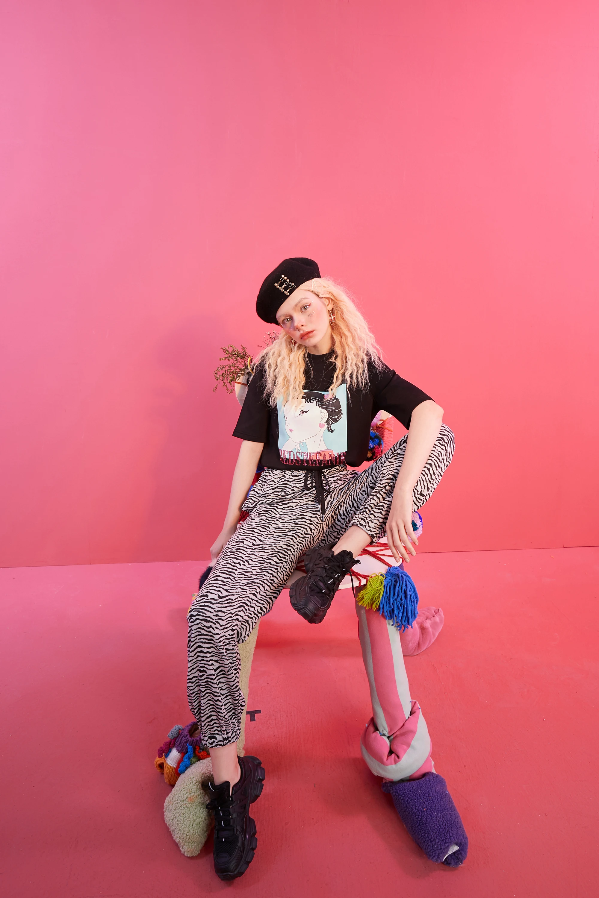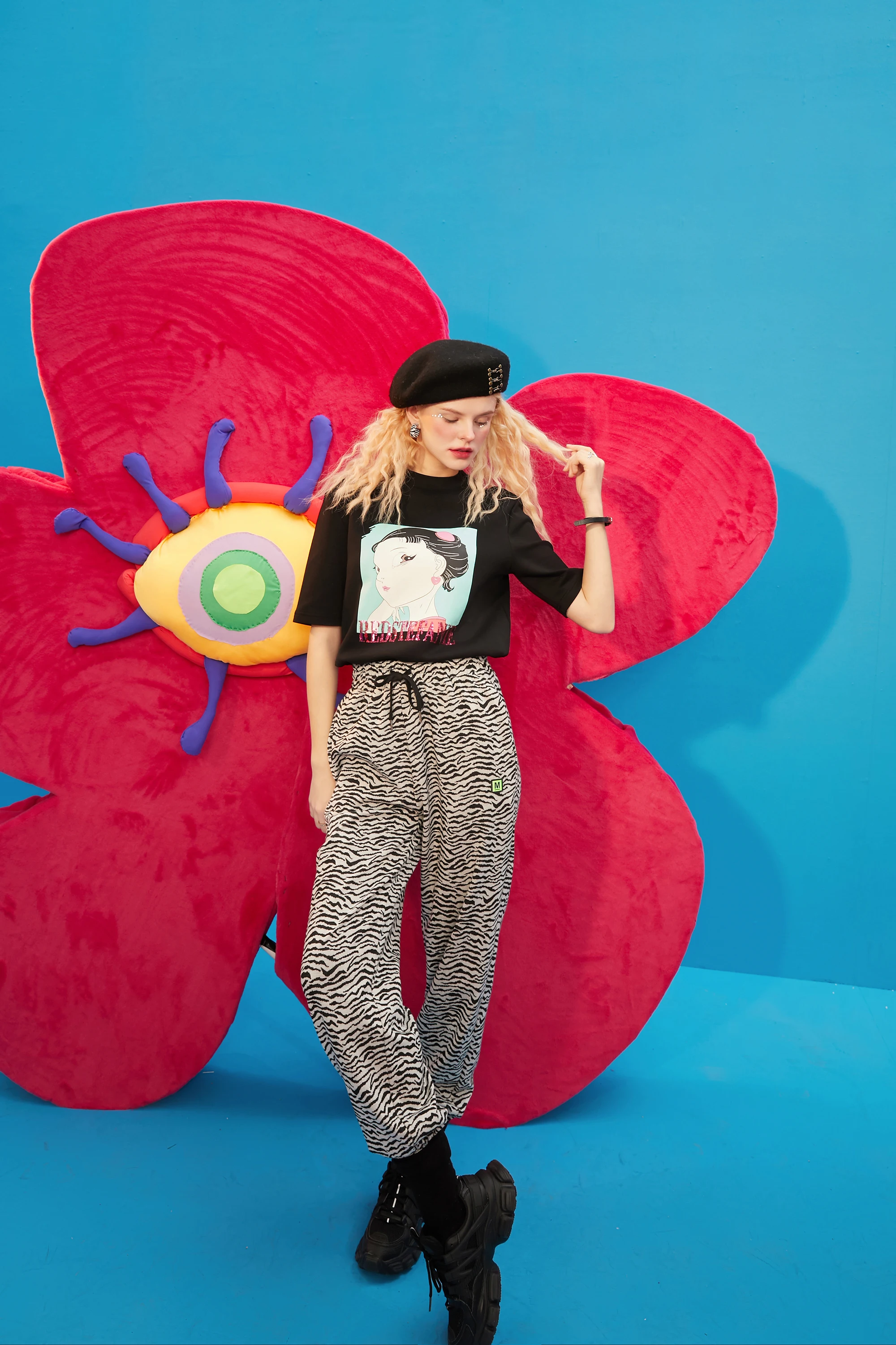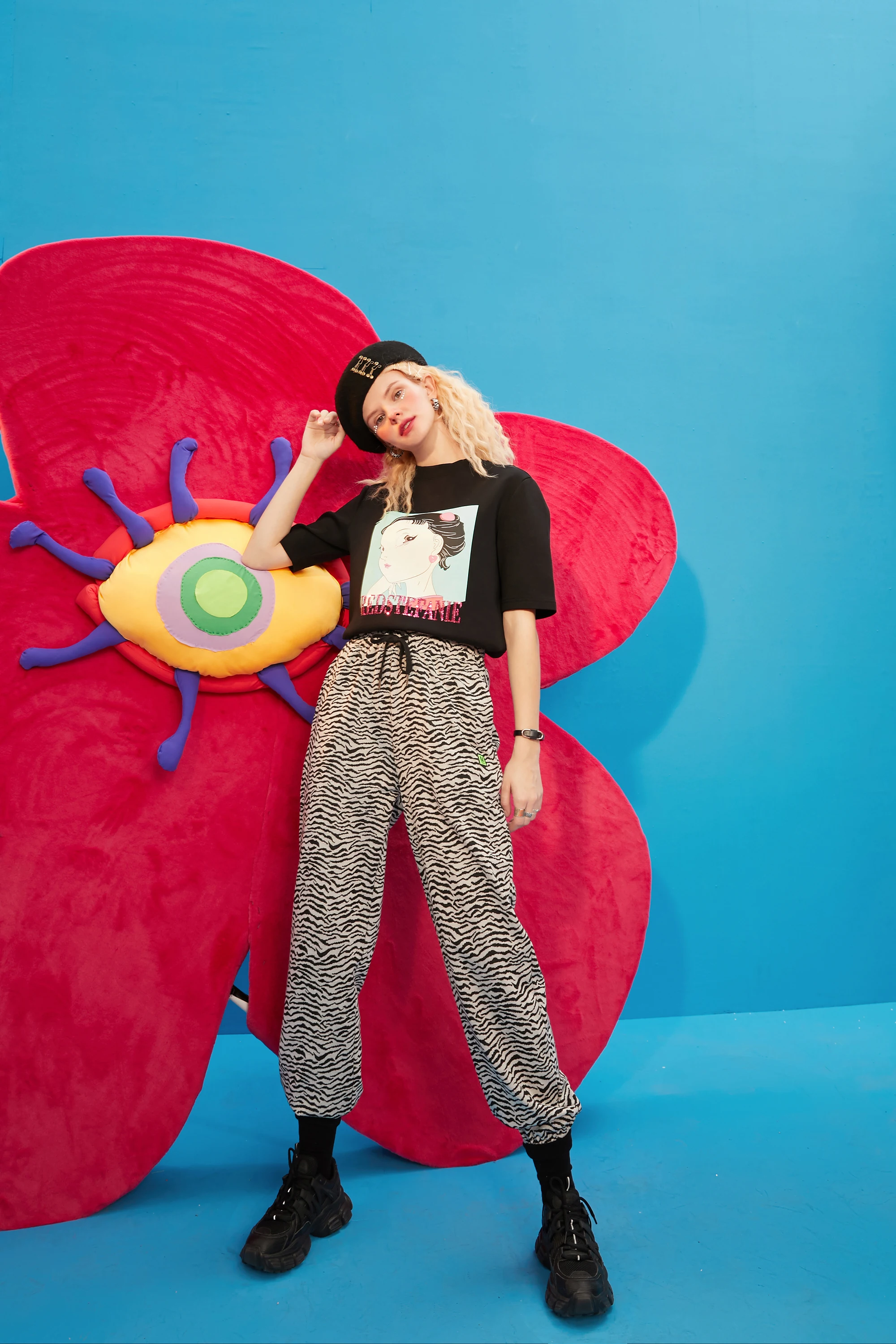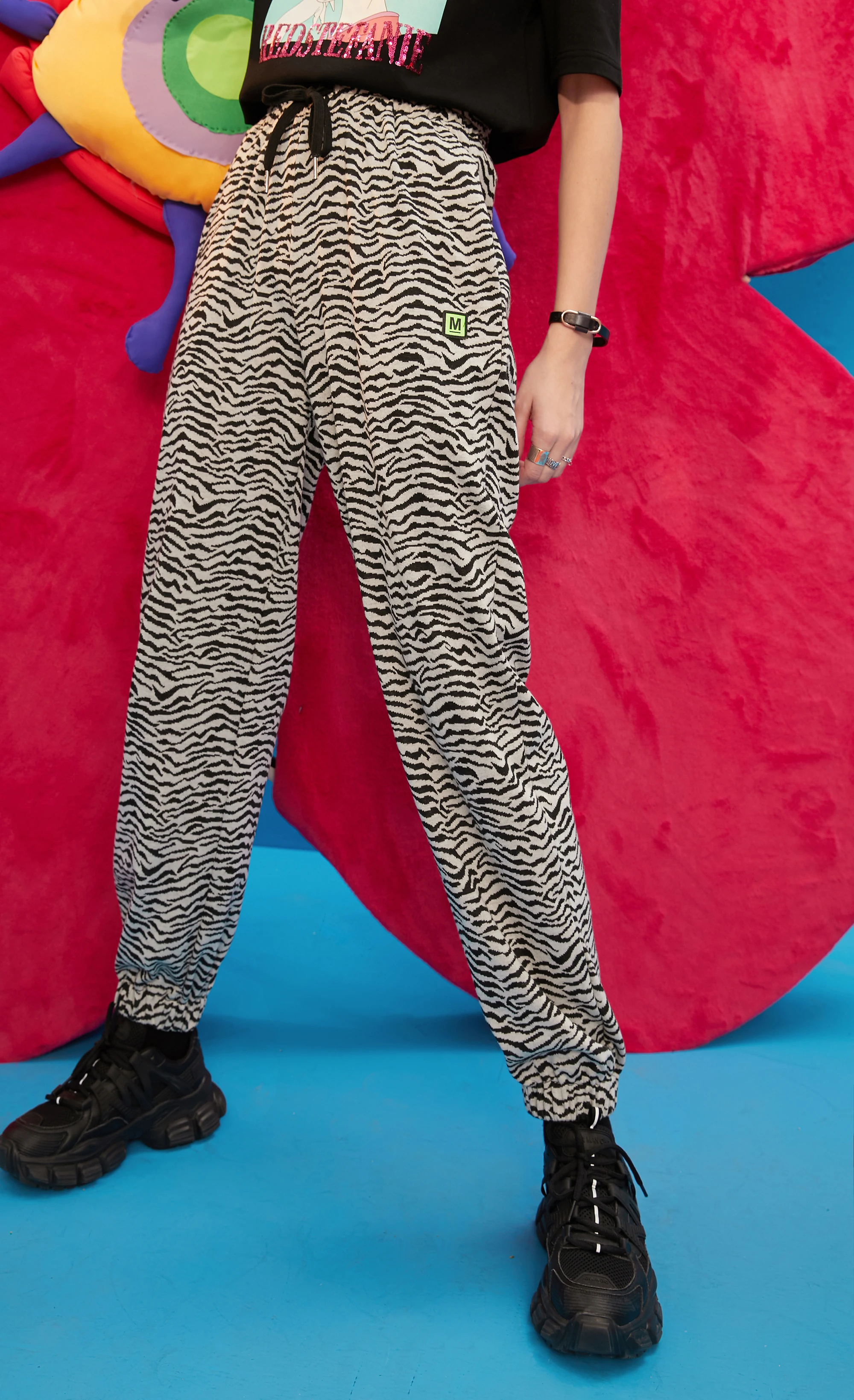 ELFSACKПолосатые повседневные женские шаровары с высокой талией в полоску с принтом зебры; Коллекция 2021 года; Сезон Зима; Винтажная Женская Базовая повседневная обувь на завязках в Корейском стиле