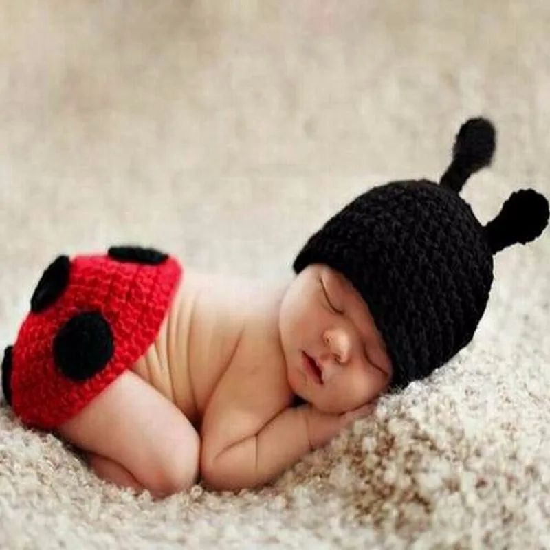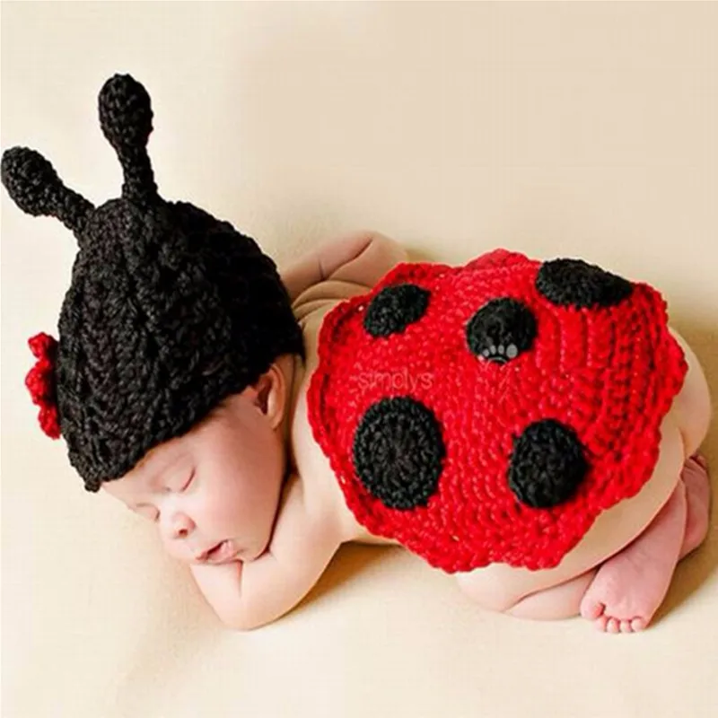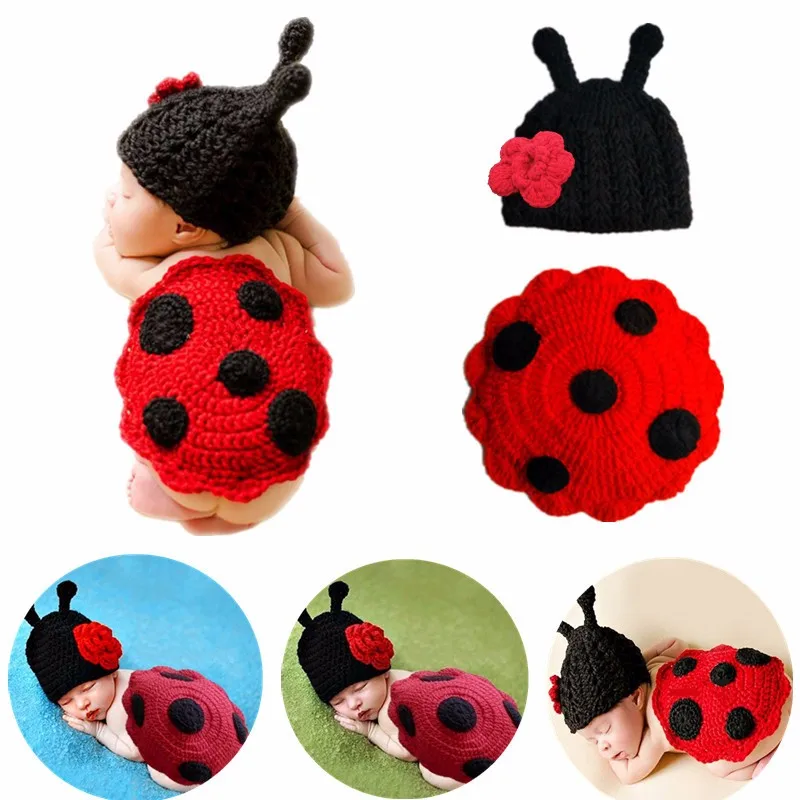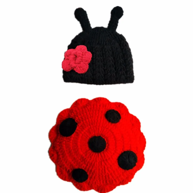 2 шт.компл. новорожденный костюм божьей коровки реквизит для фотосъемки костюм шляпа + накидка вязаная крючком одежда детская Милая одежда с насекомыми