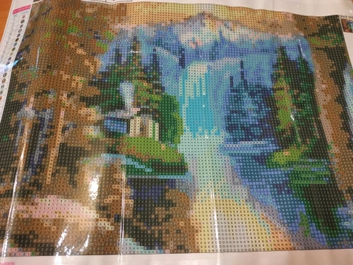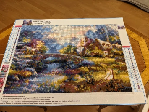Отлично, чтобы скоротать несколько вечеров. Размер в описании вместе с полями, на самом деле -4 см с каждой стороны. Детализация не ахти, но за такую цену сойдёт. Алмазиков хватило, нормальный клейкий слой