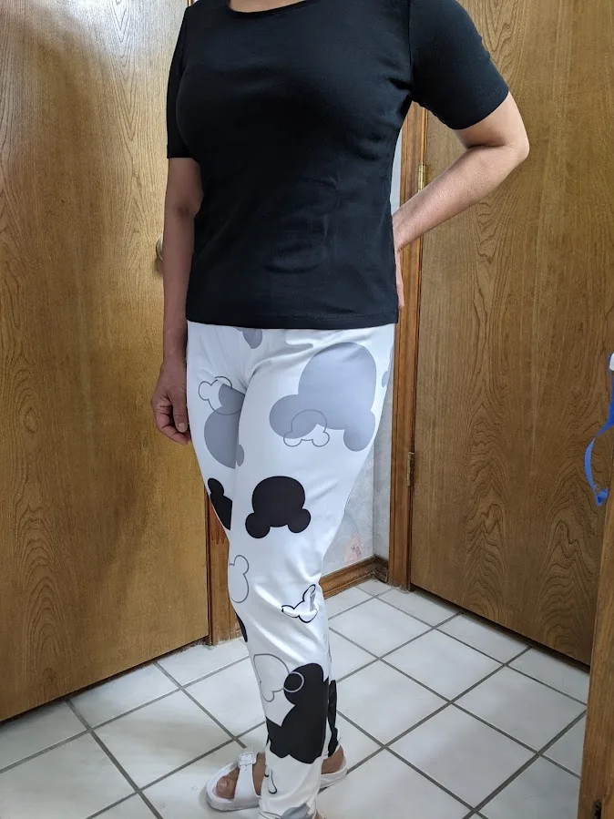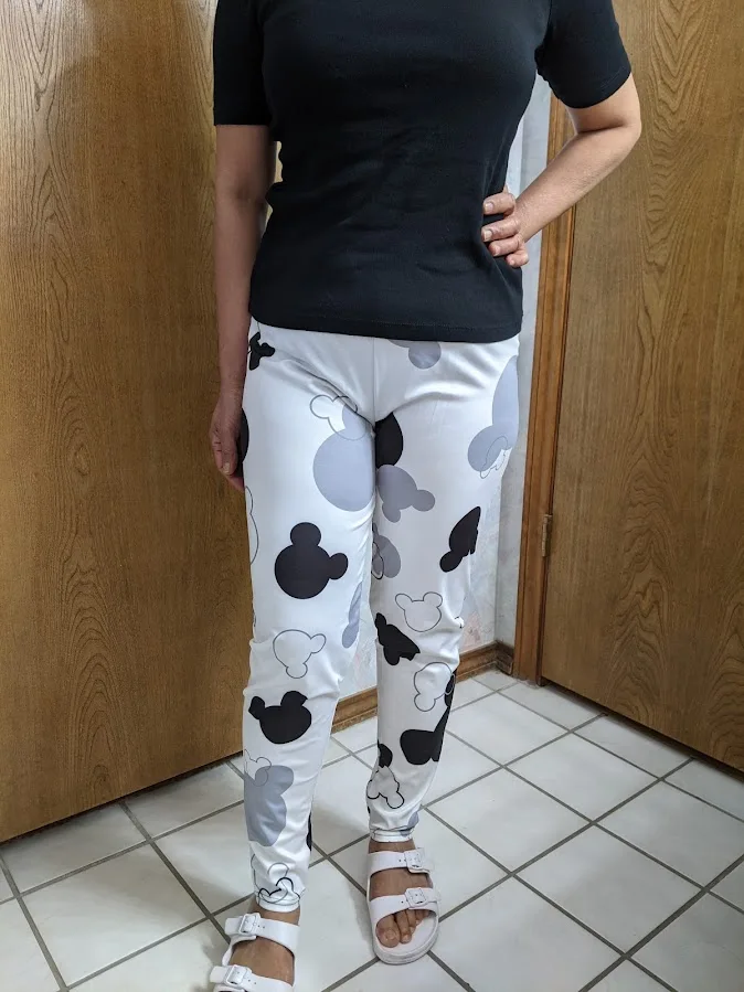 Я рост 5'3, 133 фунта. Я подобрал свой размер в соответствии с таблицей продавца. Талия подходит правильно, но Крой свободный, выглядит багги. Мне всегда нравятся мои леггинсы, чтобы выглядеть хорошо, не багги. В противном случае, мне нравится качество материала и рисунок головы Микки.