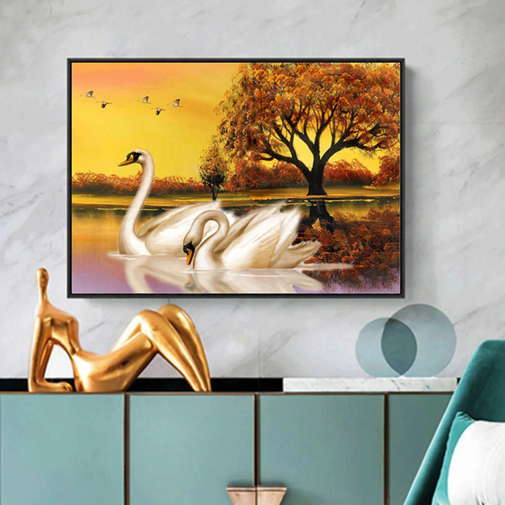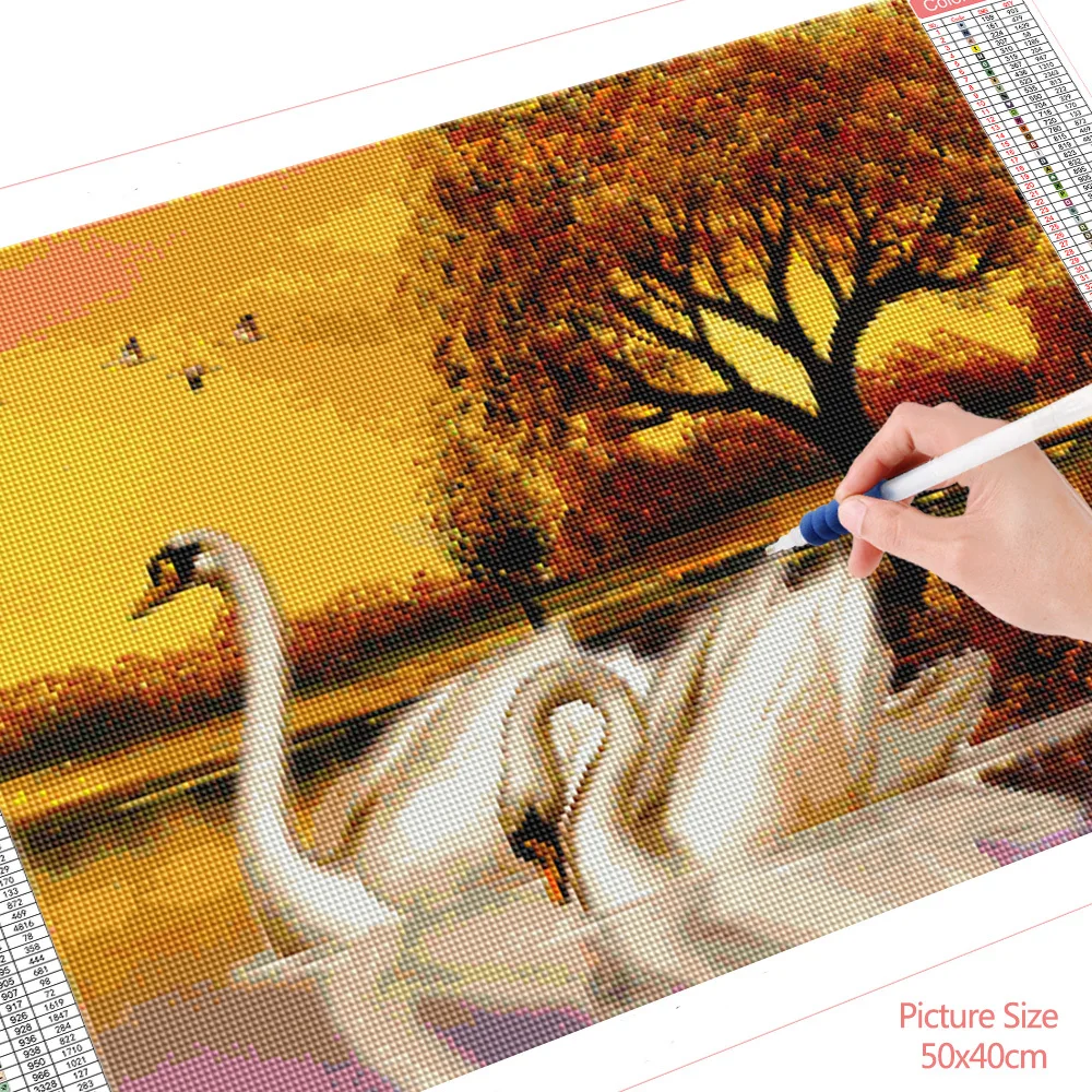 Алмазная живопись с лебедями HUACAN, Набор для вышивки крестиком, украшение для дома, полная выкладка, осень