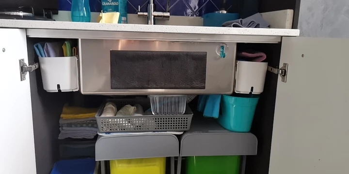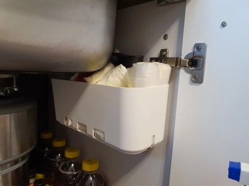 быстрая доставка, выдвигается ящик плохо. пластмасса тонкая и при перевозке погнулась. В целом приспособлю. но под мойку установить не удалось. та как выдвижной механизм работает плохо.
