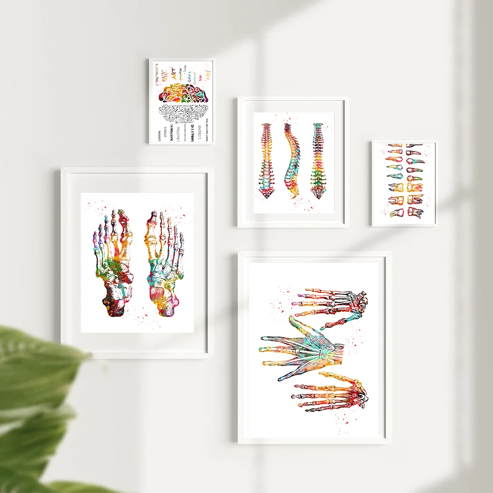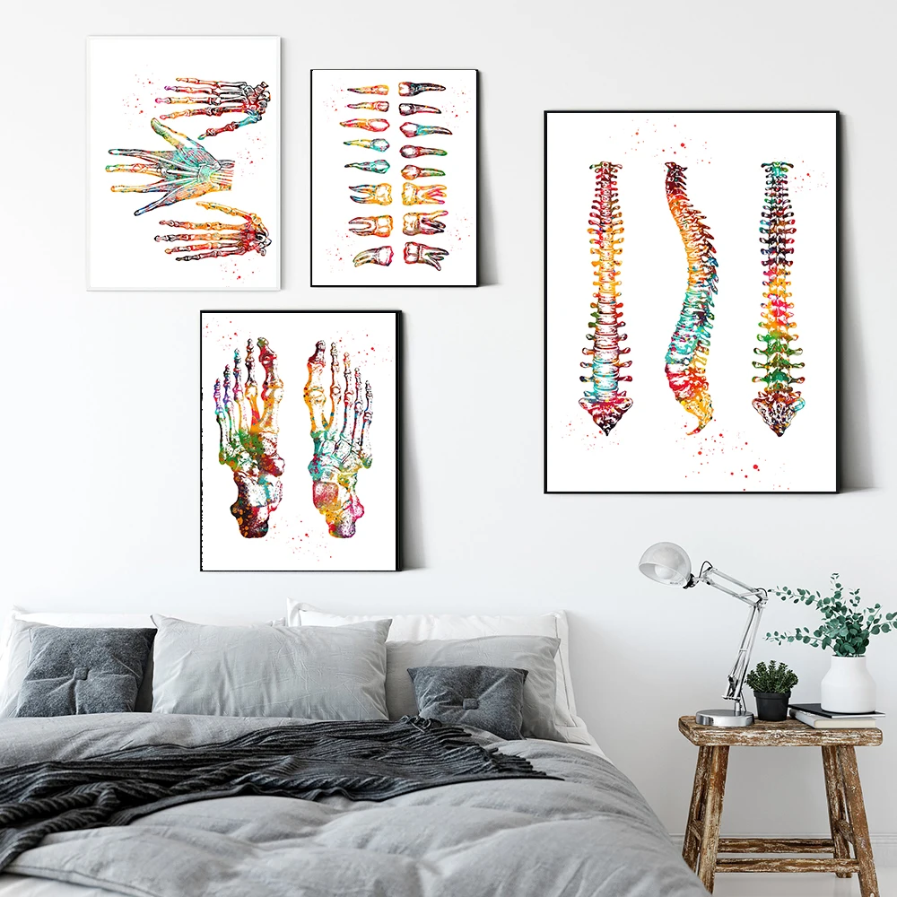 Набор с принтом "скелет", художественный холст, постер, картина для ног, кости, анатомия, медицина, настенная печать, клиника, медицинский офис, домашний декор
