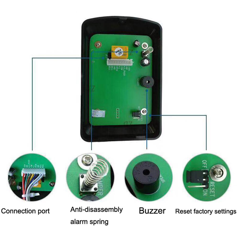 Описание товара:Классический внешний вид с полезной функциейПрофессиональный дизайн и качество для дома и офиса Высокая безопасностьРабочее напряжение: 12 В постоянного токаЕмкость карты RFID: 1000 пользовательских карт, «персональный контакт» идет отдельно с каждой картойВремя блокировки реле: 3 секундыРасстояние считывания карт: 5-15 смТип радиочастотной карты: совместимая карта EM или EMРабочая температура: -10 ~ 70 ℃Вариант дверного звонкаОпции открытия двери (выбор пользователя admin): карта (метка ключа) и пароль/карта (метка ключа) только/пароль
