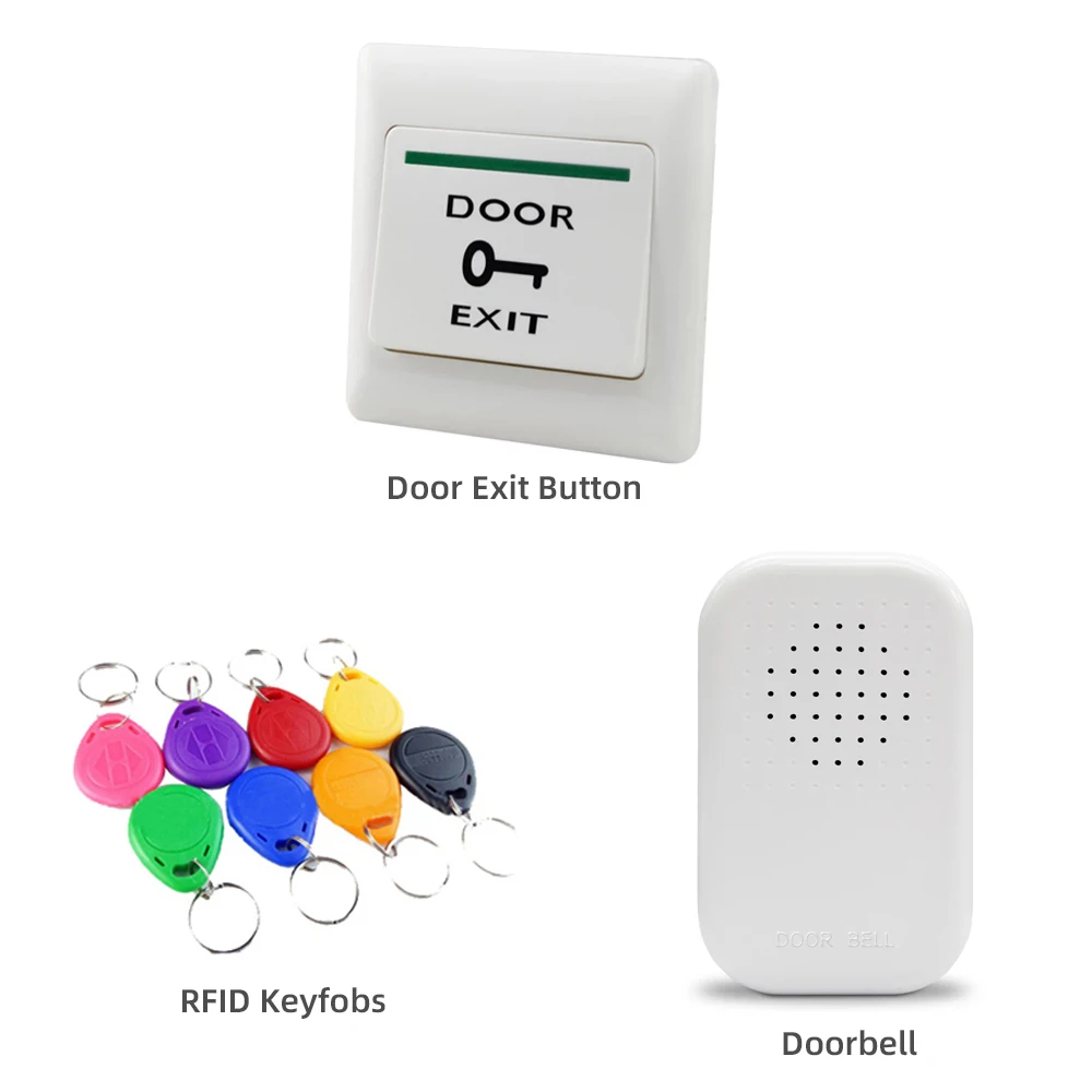 Посылка включает в себя: кнопочную панель управления доступом + блок питания + Электрический замок болта + дверной звонок + кнопка выхода + 10 брелоков