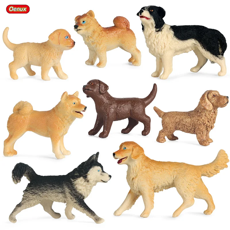 Фигурки животных Oenux, 8 шт., фигурки щенков, Сиба-ину, Хаски, Такса, милая миниатюрная коллекция, детские игрушки