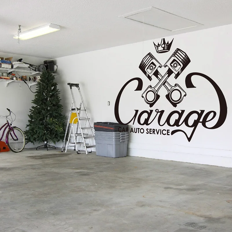Гараж поршень ремонт студия Корона настенная наклейка автомобиль автосервис клапан Настенная Наклейка виниловый магазин домашний декор
