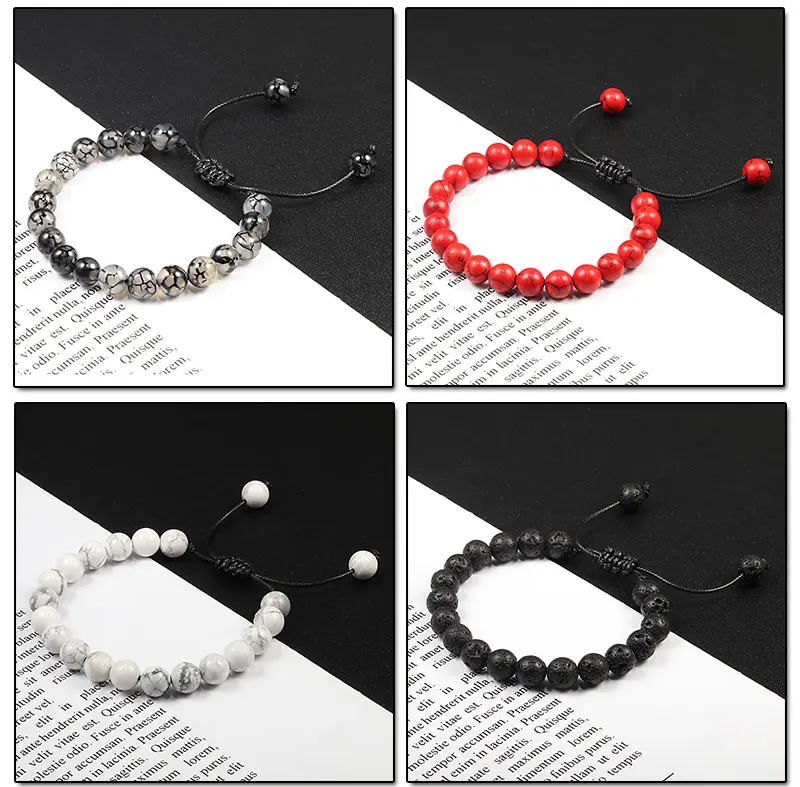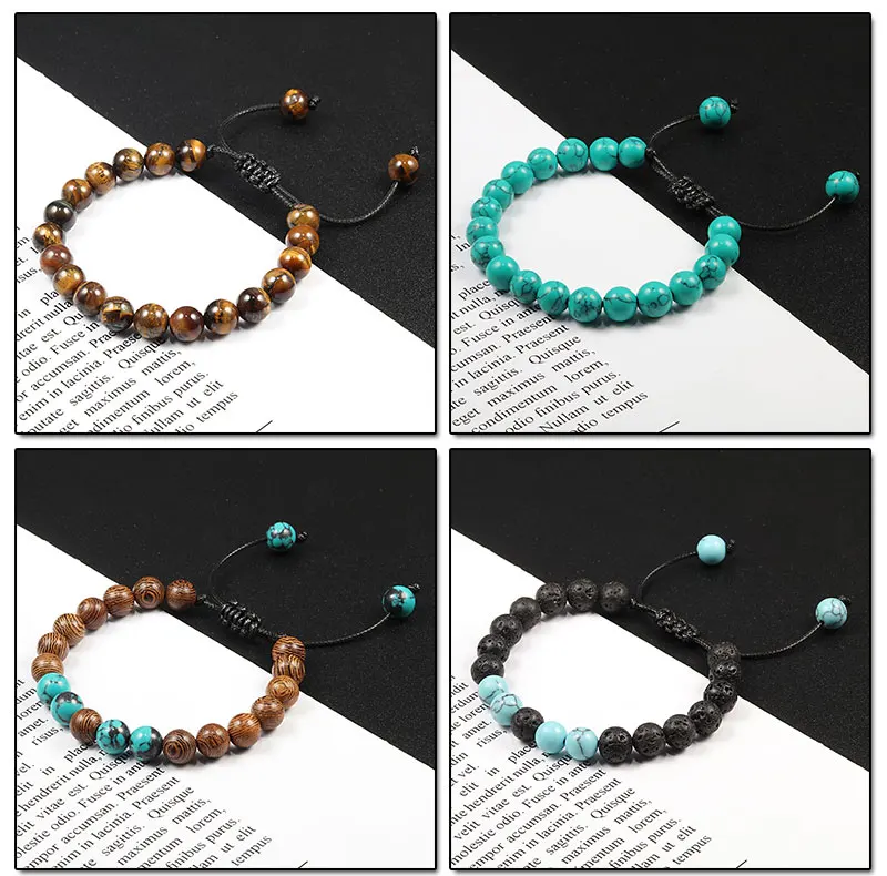Браслет из бусин 8 мм натуральный тигровый глаз и лавовый камень ручной работы плетеный мужской браслет для женщин регулируемые ювелирные изделия подарки лучшему другу