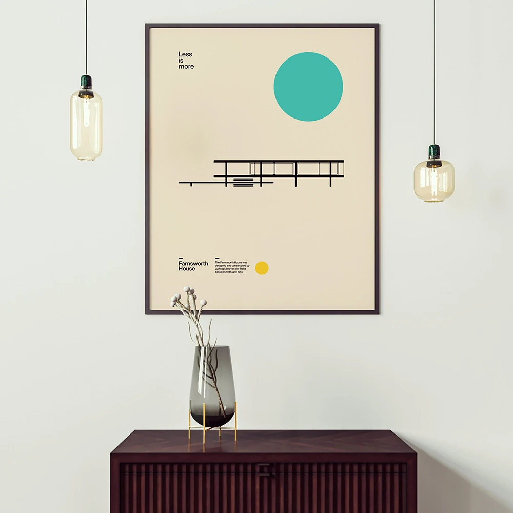 Bauhaus, выставочная картина Farnsworth House, плакат, минимальное ...