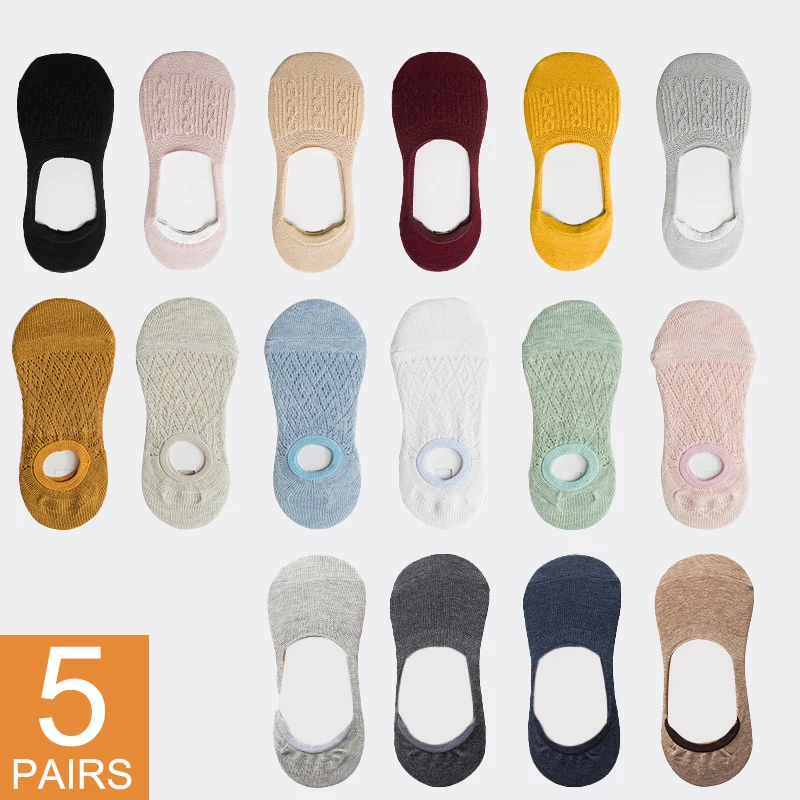 Носки-невидимки женские силиконовые, Нескользящие дышащие однотонные сетчатые до щиколотки, хлопковые тапочки, носки незаметные для показа, 5 пары, летние