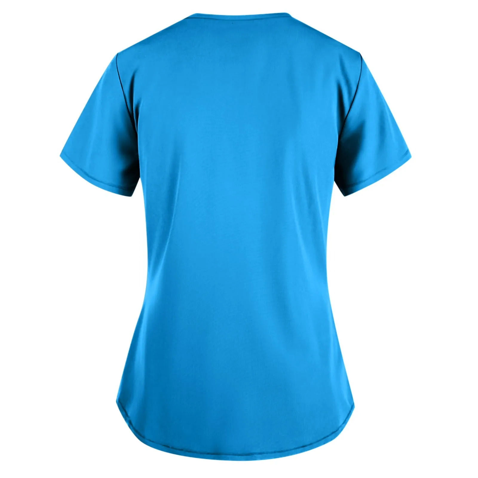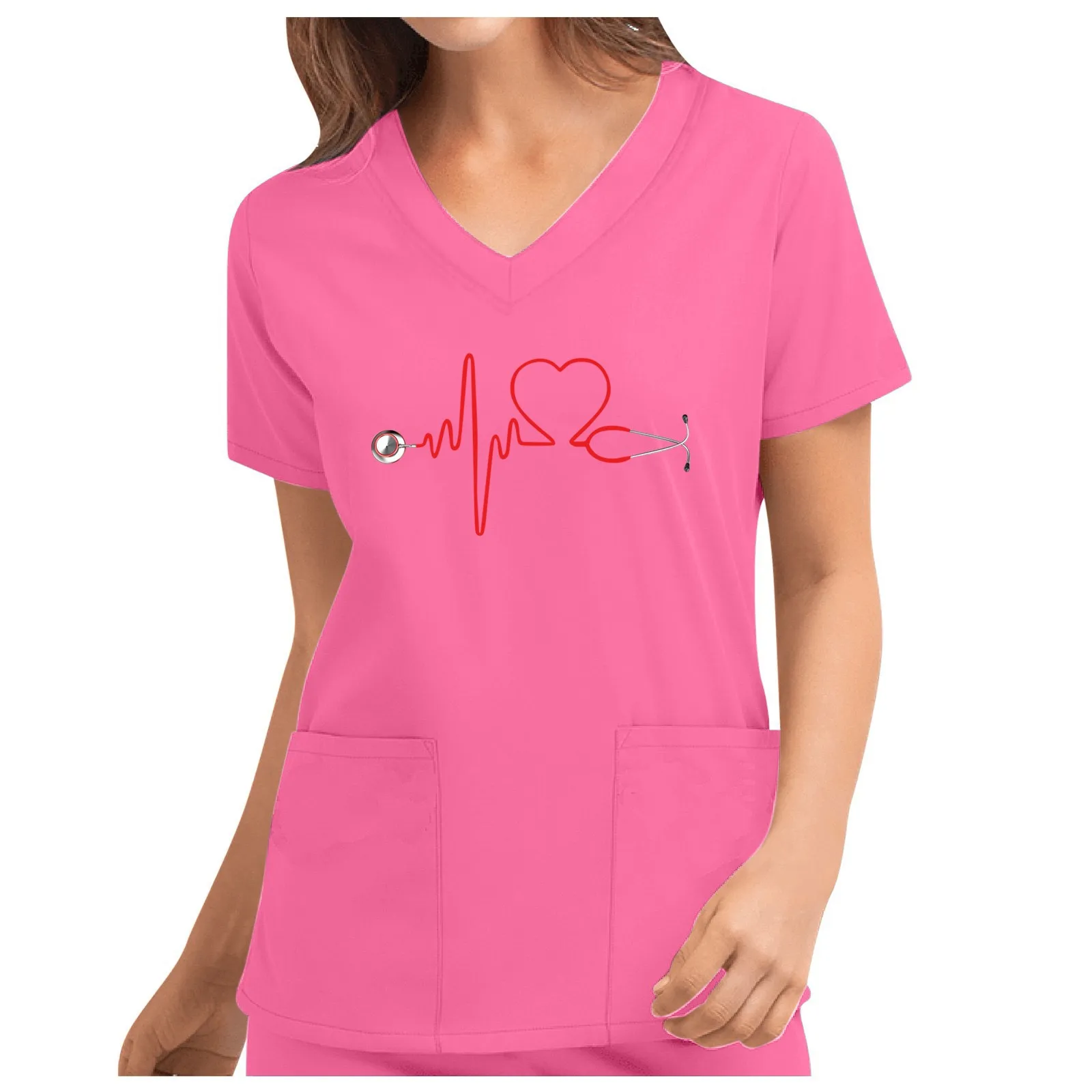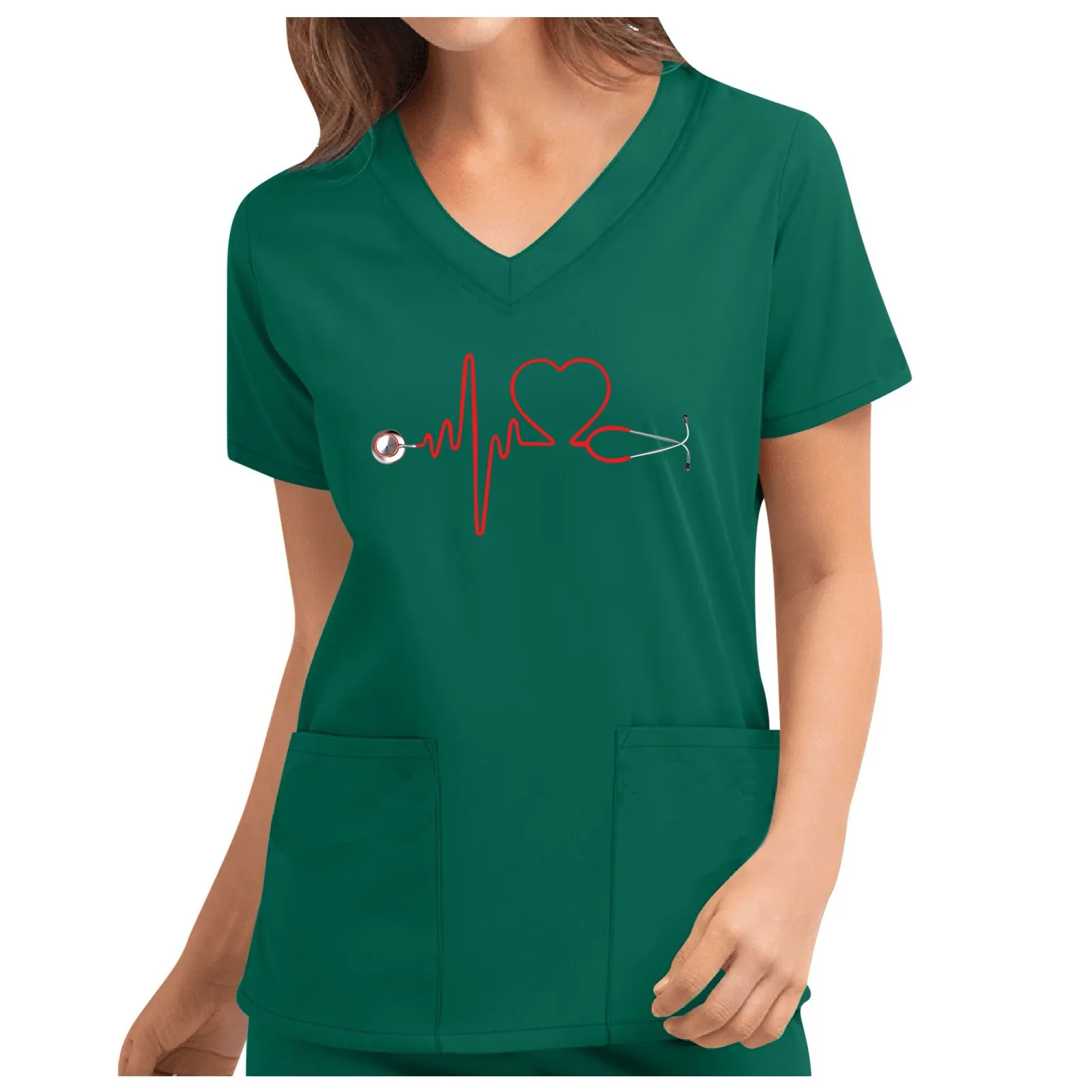 Номер моделиNurse Overalls Scrubs Women Heartbeat Print Short Sleeve V-neck Tops N