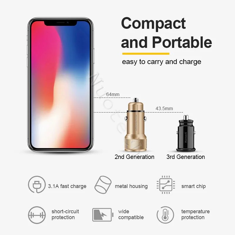 Nuotech мини зарядное устройство для автомобиля с двумя портами USB для Мобильный телефон планшет 4.8A универсальное быстрое зарядное устройство для автомобиля с двумя портами зарядное устройство для iPhone
