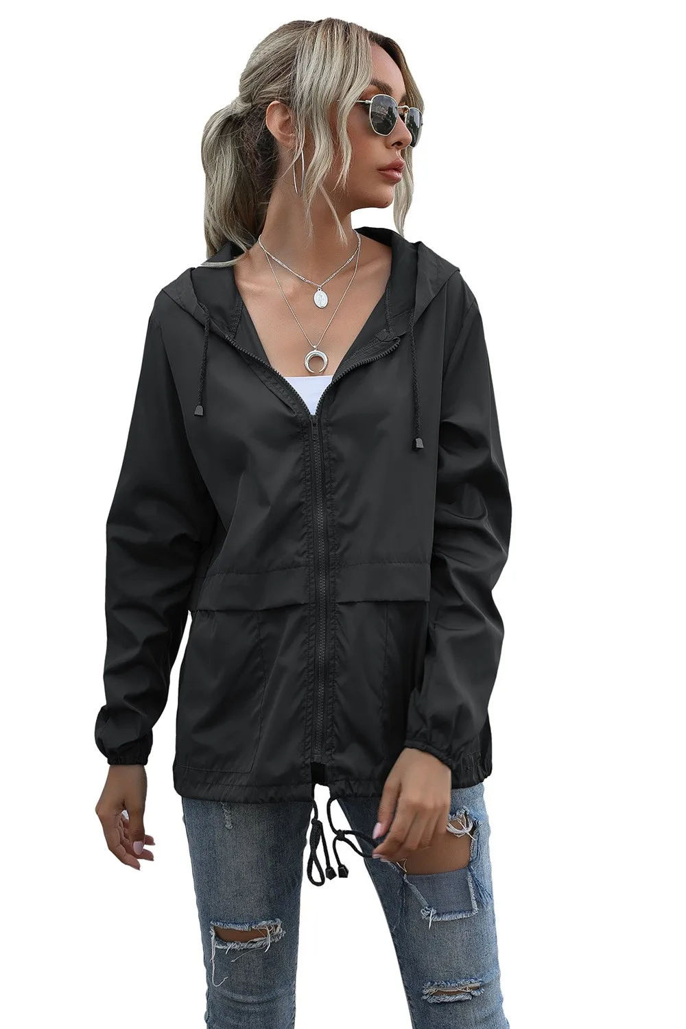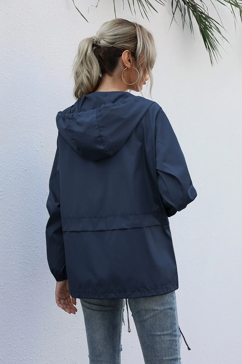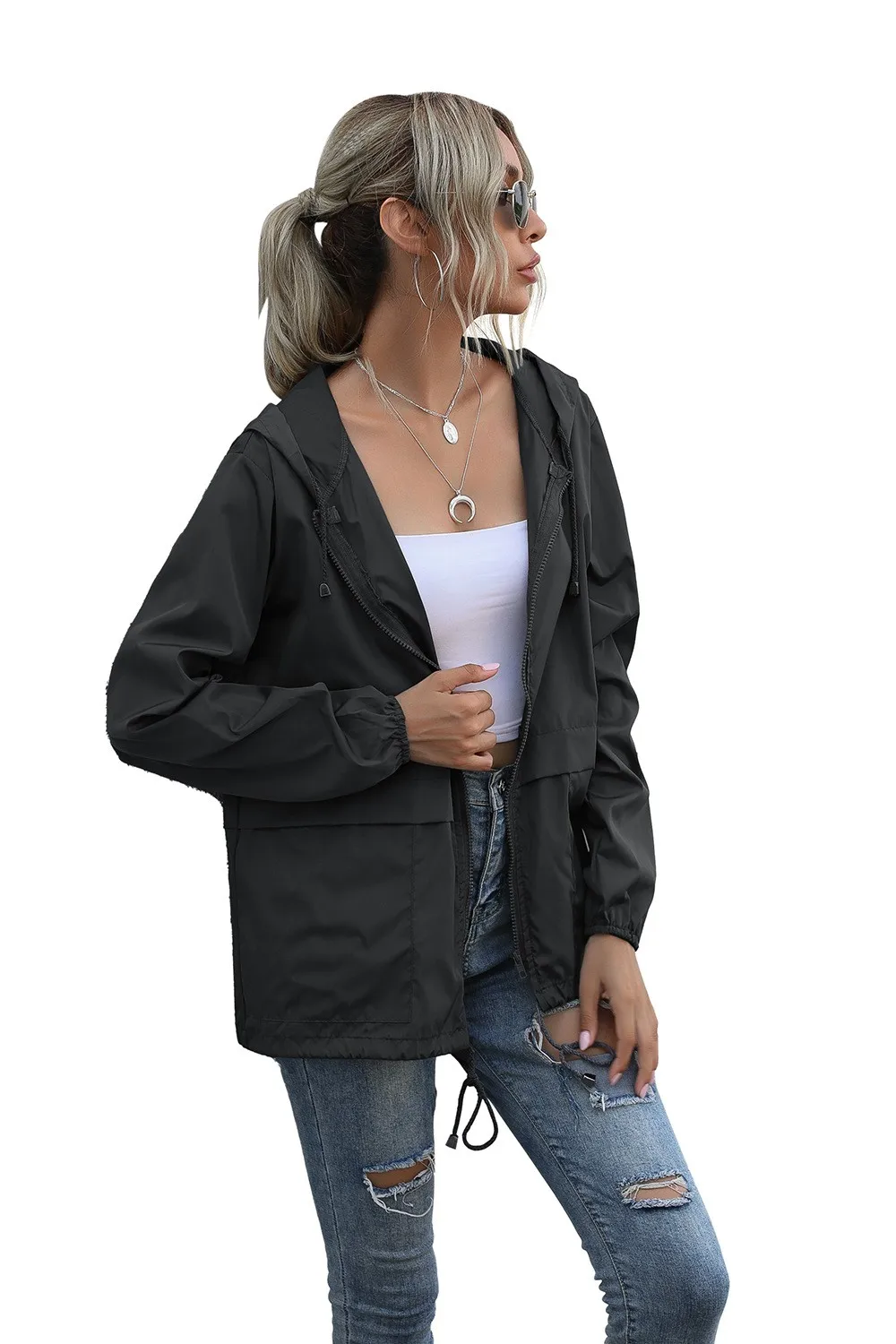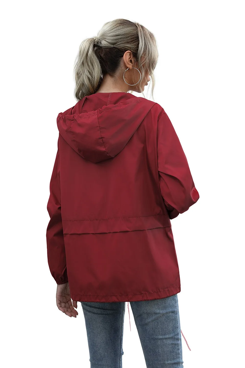 Женская ветрозащитная куртка на молнии, однотонная Повседневная куртка с длинным рукавом и капюшоном, 2021